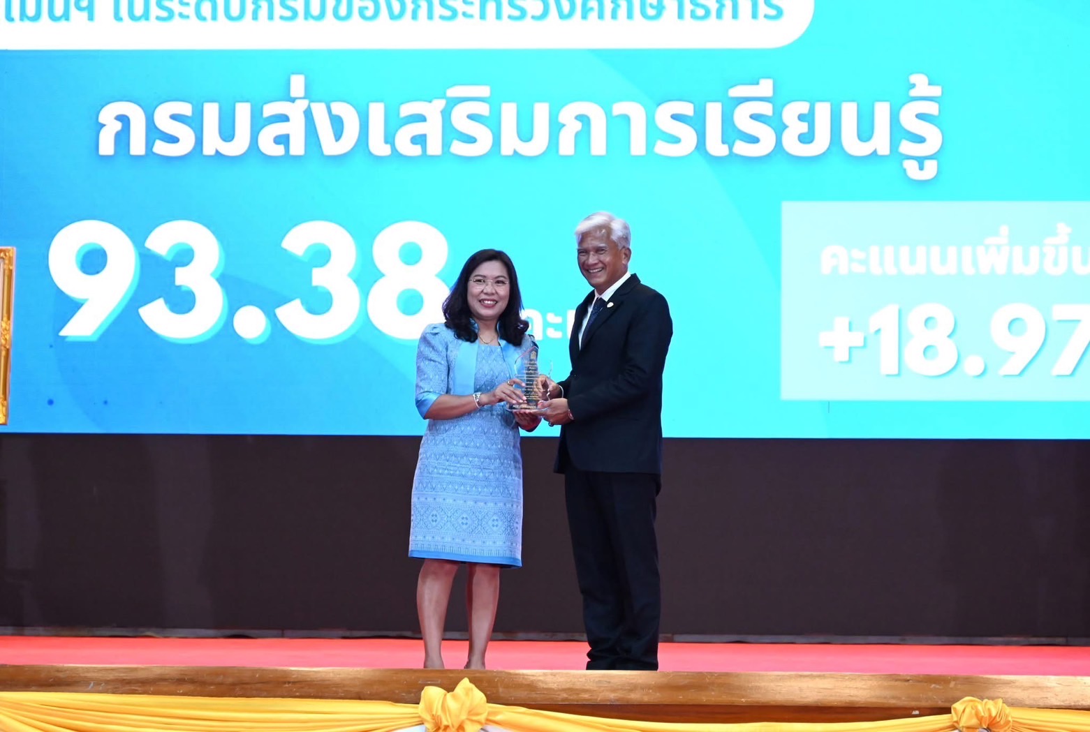 วันที่ 23 กันยายน 2568 นายธนากร ดอนเหนือ อธิบดีกรมส่งเสริมการเรียนรู้ มอบหมายให้ นางสาววัชรีวรรณ กันเดช ผู้เชี่ยวชาญเฉพาะด้านพัฒนาเครือข่าย เป็นผู้แทนรับมอบรางวัลการประเมินคุณธรรมและความโปร่งใสในการดำเนินงานของหน่วยงานภาครัฐ (ITA) กระทรวงศึกษาธิการ ประจำปีงบประมาณ พ.ศ. 2568 (MOE ITA AWARDS 2025) โดยมี นายสุเทพ แก่งสันเทียะ ปลัดกระทรวงศึกษาธิการ เป็นประธานมอบรางวัล พร้อมทั้งกล่าวแสดงความยินดีแก่หน่วยงานที่ได้รับรางวัลและมอบนโยบายในการขับเคลื่อนองค์กรตามหลักธรรมาภิบาล ณ หอประชุมคุรุสภา กระทรวงศึกษาธิการ