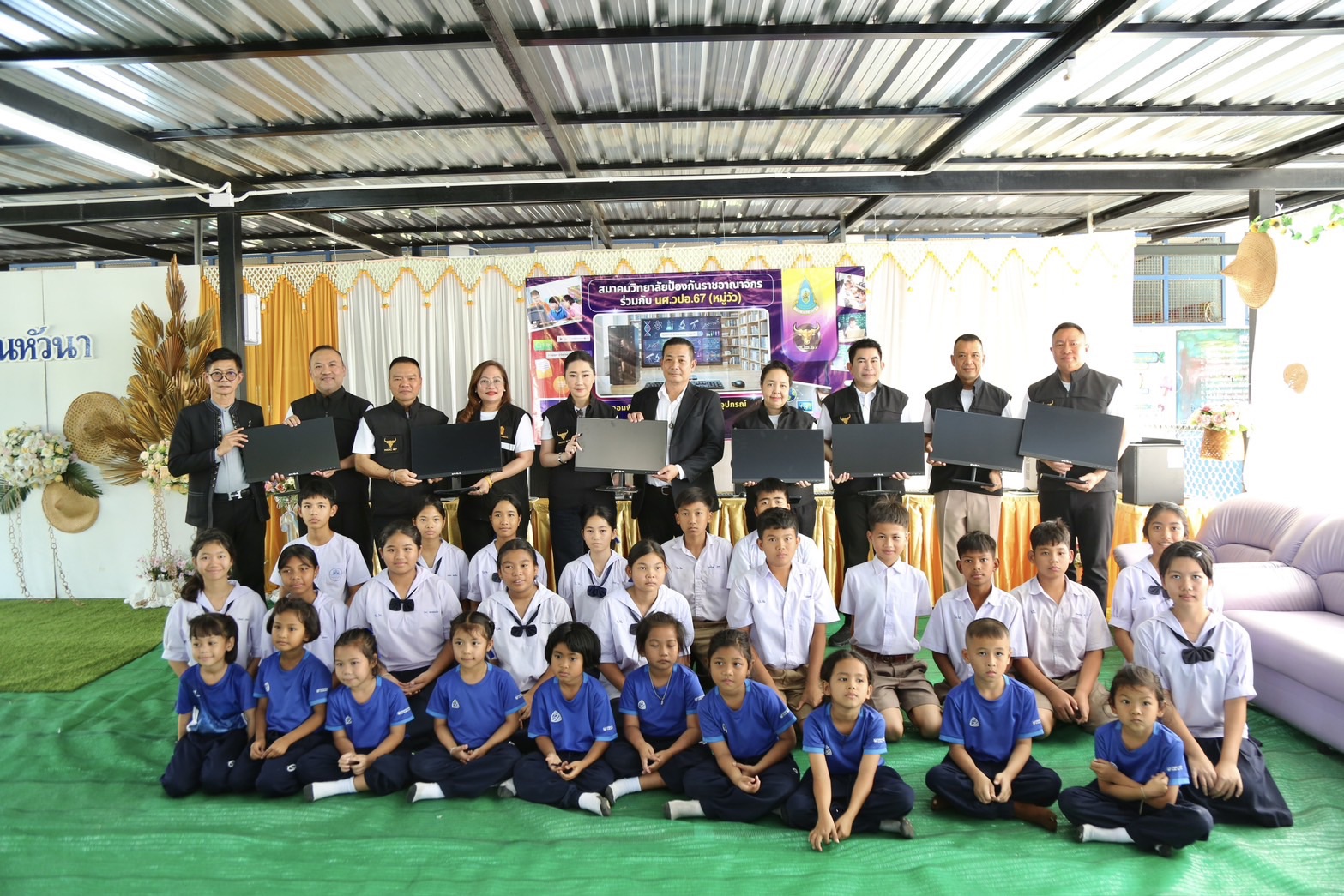 นักศึกษาวิทยาลัยป้องกันราชอาณาจักร รุ่นที่ 67 (หมู่วัว) ร่วมกับสมาคมวิทยาลัยป้องกันราชอาณาจักร จัดกิจกรรมเพื่อสังคม (CSR) มอบคอมพิวเตอร์ จำนวน 9 เครื่อง พร้อมอุปกรณ์ที่เกี่ยวข้อง ให้แก่โรงเรียนบ้านหัวนา สังกัดสำนักงานเขตพื้นที่การศึกษาประถมศึกษากาญจนบุรี เขต 1 เพื่อสนับสนุนการจัดการเรียนการสอน และส่งเสริมทักษะด้านเทคโนโลยีสารสนเทศให้แก่นักเรียนในโรงเรียนขนาดเล็ก เพิ่มโอกาสการเข้าถึงสื่อการเรียนรู้และเครื่องมือดิจิทัลอย่างทั่วถึง