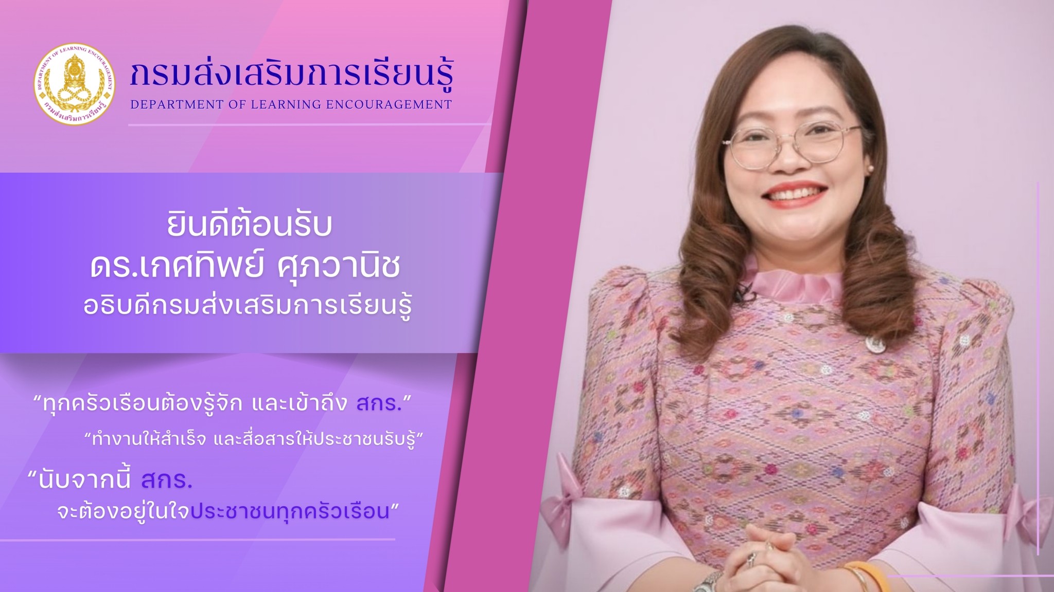 วันที่ 6 ตุลาคม 2568 นางเกศทิพย์ ศุภวานิช อธิบดีกรมส่งเสริมการเรียนรู้ (สกร.) มอบนโยบายและแนวทางการดำเนินงานส่งเสริมการเรียนรู้ ประจำปีงบประมาณ …