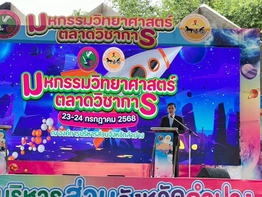 เมื่อวันที่ 24 กรกฎาคม 2568 ศูนย์วิทยาศาสตร์เพื่อการศึกษาลำปาง ได้จัดการประกวดโครงงานวิทยาศาสตร์ สำหรับนักศึกษา สกร. ด้านสิ่งแวดล้อม ประเภทนวัตกรรมการจัดการขยะ ระดับพื้นที่ภาคเหนือตอนบน ปี 2568 โดยมี นายเอกราช ชวีวัฒน์ รองอธิบดีกรมส่งเสริมการเรียนรู้ เป็นประธานในพิธีเปิดฯ และ นายสังข์ กาญจนเพิ่มพูน ผู้อำนวยการศูนย์วิทยาศาสตร์เพื่อการศึกษาลำปาง เป็นผู้กล่าวรายงานวัตถุประสงค์ของการประกวดฯ ณ องค์การบริหารส่วนจังหวัดลำปาง
