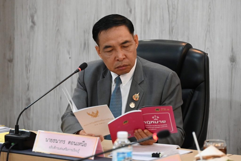 วันที่ 18 กันยายน 2568 นายธนากร ดอนเหนือ อธิบดีกรมส่งเสริมการเรียนรู้ เป็นประธานการประชุมหารือแนวทางปรับโครงสร้างหน่วยงานทางการศึกษาในกรมส่งเสริมการเรียนรู้ และผ่านระบบออนไลน์ Zoom Cloud Meetings ผู้เข้าร่วมประชุม ประกอบด้วย นายเอกราช ชวีวัฒน์ รองอธิบดีกรมส่งเสริมการเรียนรู้ นายชัยพัฒน์ พันธุ์วัฒนสกุล รองอธิบดีกรมส่งเสริมการเรียนรู้ นายประเสริฐ บุญเรือง ผู้ทรงคุณวุฒิ ผู้แทนสำนักงานคณะกรรมการพัฒนาระบบราชการ ผู้อำนวยการกองกฎหมายการศึกษาและวัฒนธรรม สำนักงานคณะกรรมการกฤษฎีกา ผู้แทนสำนักงานคณะกรรมการข้าราชการพลเรือน และผู้แทนสำนักงาน ก.ค.ศ. และเจ้าหน้าที่ผู้เกี่ยวข้อง เข้าร่วมประชุมพิจารณาในประเด็น เรื่อง แนวทางปรับโครงสร้างหน่วยงานทางการศึกษาในกรมส่งเสริมการเรียนรู้ ณ ห้องประชุมบรรจง ชูสกุลชาติ กรมส่งเสริมการเรียนรู้
