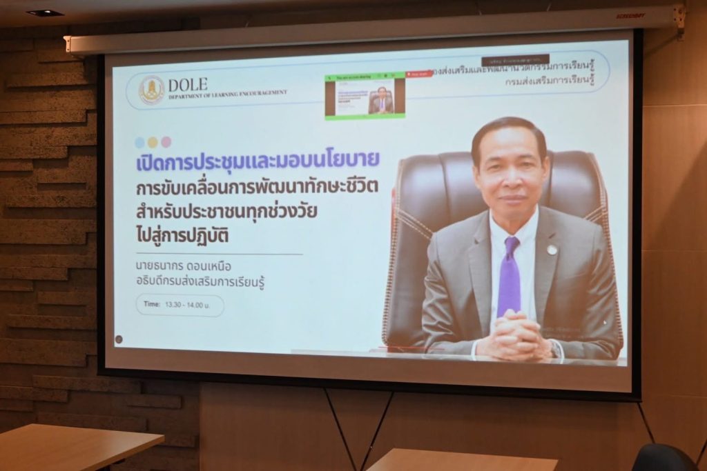 พร้อมกันนี้ อธิบดีกรมส่งเสริมการเรียนรู้ มอบนโยบายการขับเคลื่อนการพัฒนาทักษะชีวิตประชาชนทุกช่วงวัย โดยให้ทุกสถานศึกษาจัดทำแผนขับเคลื่อนการดำเนินงานให้สอดคล้องกับแผนส่งเสริมการเรียนรู้ หรือแผนการดำเนินงานของหน่วยงานและสถานศึกษา นำเทคโนโลยีสารสนเทศและนวัตกรรม มาจัด ส่งเสริม และสนับสนุนการเรียนรู้ จัดทำหรือพัฒนาโปรแกรมการเรียนรู้ สื่อการเรียนรู้ โครงการ กิจกรรม ในรูปแบบที่หลากหลาย ยืดหยุ่น และสอดคล้องกับบริบทผู้เรียน จัดให้มีและพัฒนาแหล่งเรียนรู้ รวมทั้งบูรณาการแหล่งเรียนรู้กับชุมชน เพื่อเป็นฐานสำคัญในการส่งเสริมและสนับสนุนการพัฒนาทักษะชีวิตให้แก่ผู้เรียน ส่งเสริมและสนับสนุนให้ภาคีเครือข่ายทุกภาคส่วนมีส่วนร่วมในการจัด หรือร่วมดำเนินการจัดการเรียนรู้ ส่งเสริมและพัฒนาศักยภาพครู ผ่านการจัดหรือร่วมจัดอบรมกับภาคีครือข่าย ส่งเสริมและสนับสนุนการวิจัยและพัฒนาองค์ความรู้ รูปแบบ วิธีการและนวัตกรรม ในการจัด ส่งเสริมและสนับสนุนการเรียนรู้ ส่งเสริมการนิเทศ ติดตามและประเมินผลการจัดการเรียนรู้ตลอดชีวิตอย่างเป็นระบบ “ยกระดับการจัด ส่งเสริม และสนับสนุนการเรียนรู้ตลอดชีวิตเพื่อพัฒนาทักษะชีวิต แก่ประชาชนทุกช่วงวัยอย่างต่อเนื่อง เน้นการจัดการเรียนรู้ที่ยืดหยุ่นสอดคล้องกับบริบทของผู้เรียนในแต่ละช่วงวัย ผ่านการบูรณาการทรัพยากร การสร้างความร่วมมือกับภาคีเครือข่ายทุกภาคส่วน รวมถึงนำเทคโนโลยีนวัตกรรมมาส่งเสริมและสนับสนุนการเรียนรู้เพื่อให้ประชาชน สามารถเรียนรู้ได้ด้วยตนเอง ทุกที่ ทุกเวลา” อธิบดีกรมส่งเสริมการเรียนรู้ กล่าว