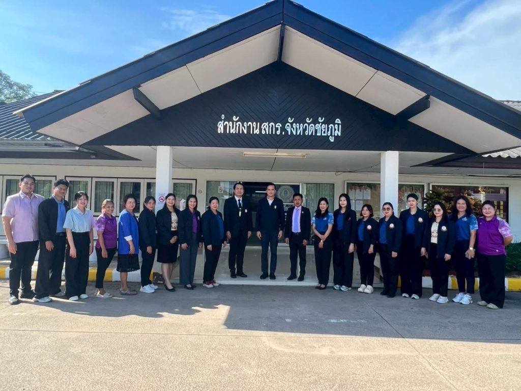 เมื่อวันที่ 3 ตุลาคม 2568 นายเอกราช ชวีวัฒน์ รองอธิบดีกรมส่งเสริมการเรียนรู้ ลงพื้นที่ตรวจเยี่ยมการดำเนินงานและแนวทางการดำเนินการสร้างอาคารสำนักงานพร้อมทั้งให้ข้อเสนอแนะในการพัฒนาอาคารสถานที่ให้เอื้อต่อการส่งเสริมการเรียนรู้และให้กำลังใจแก่เจ้าหน้าที่ผู้ปฏิบัติงาน โดยมีนายกาเรียน ยืนยงชาติ ผู้อำนวยการสำนักงานส่งเสริมการเรียนรู้ประจำจังหวัดชัยภูมิ พร้อมด้วย นายภูริพัฒน์ ศรีแจ่ม รองผู้อำนวยการสำนักงานส่งเสริมการเรียนรู้ประจำจังหวัดสุพรรณบุรี ผู้ฝึกประสบการณ์จริงในหน่วยงานการศึกษาส่วนราชการกำหนด ก่อนแต่งตั้งให้ดำรงตำแหน่ง ผู้อำนวยการสำนักงานส่งเสริมการเรียนรู้ประจำจังหวัด/กรุงเทพมหานครและข้าราชการและบุคลากรทางการศึกษาณ สำนักงานส่งเสริมการเรียนรู้ประจำจังหวัดชัยภูมิ