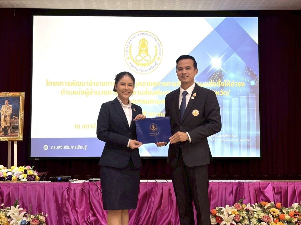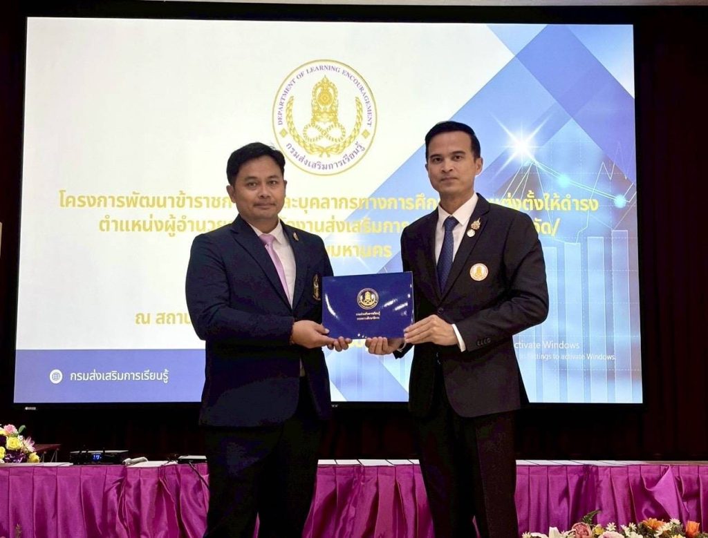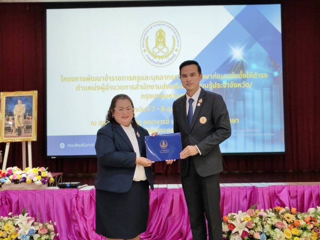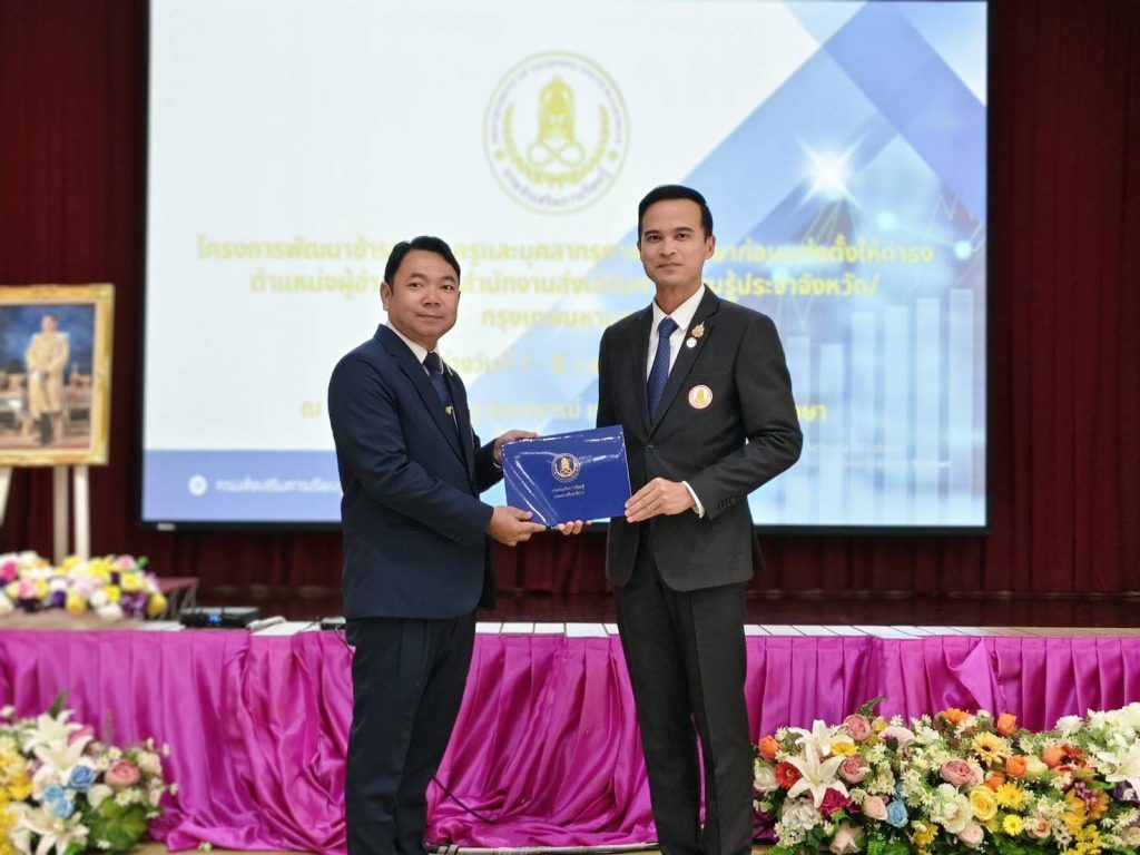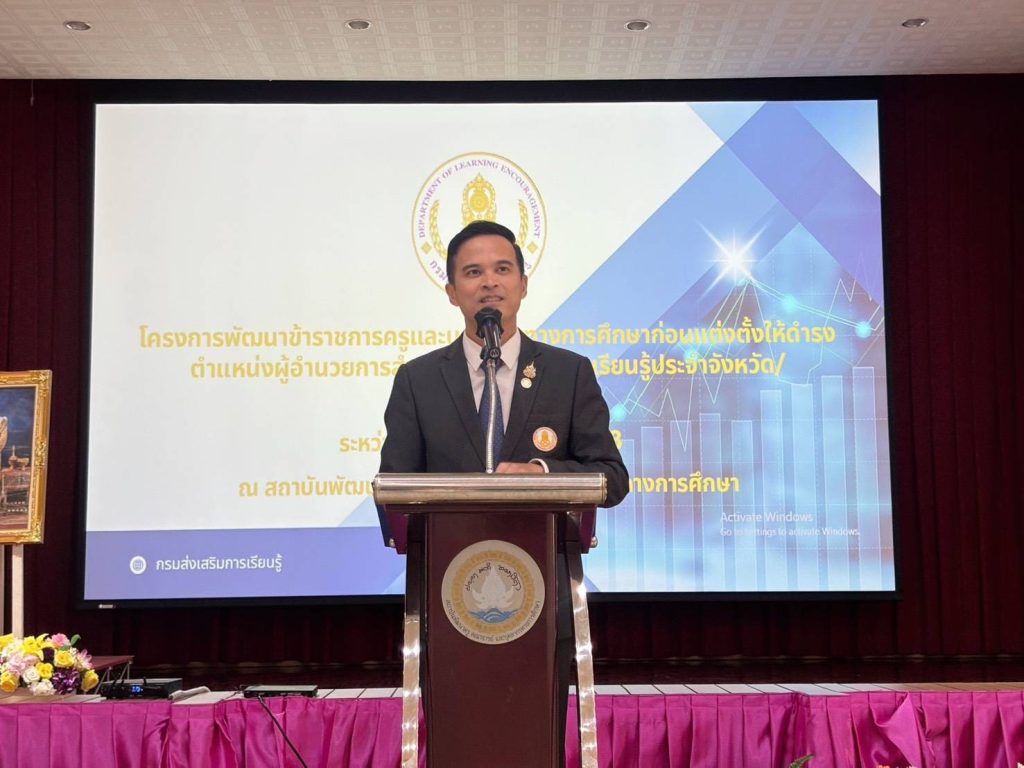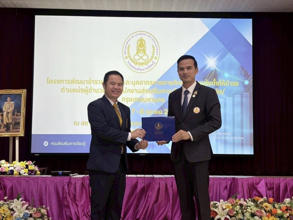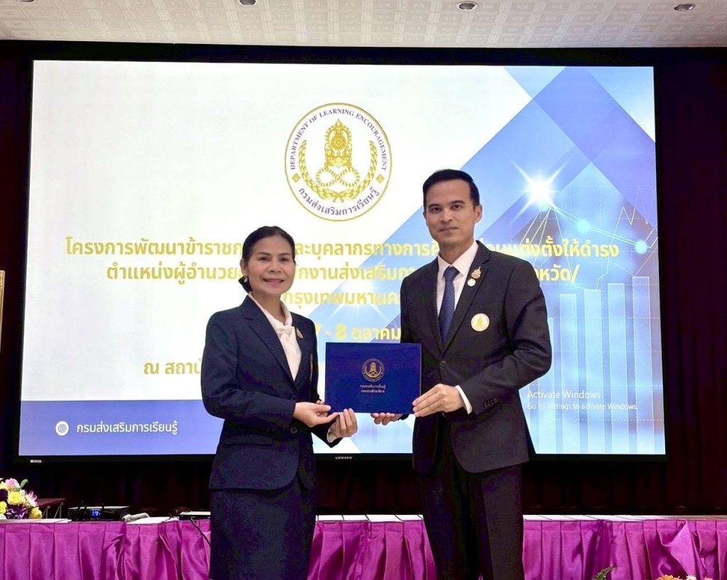 วันที่ 8 ตุลาคม 2568 นางเกศทิพย์ ศุภวานิช อธิบดีกรมส่งเสริมการเรียนรู้ มอบหมายให้ นายเอกราช ชวีวัฒน์ รองอธิบดีกรมส่งเสริมการเรียนรู้เป็นประธานในพิธีปิดโครงการ ฯ พร้อมมอบเกียรติบัตร “โครงการพัฒนาข้าราชการครูและบุคลากรทางการศึกษาก่อนแต่งตั้งให้ดำรงตำแหน่งให้ดำรงตำแหน่งผู้อำนวยการสำนักงาน สกร.ประจำจังหวัด/กรุงเทพมหานคร ระยะที่ 3 การประชุมเชิงปฏิบัติการ จัดทำรายงานและนำเสนอผลงาน“ ระหว่างวันที่ 7 – 8 ตุลาคม 2568 ณ สถาบันพัฒนาครู คณาจารย์ และบุคลากรทางการศึกษา จังหวัดนครปฐม โดยมีผู้เข้ารับการพัฒนาในสังกัดกรมส่งเสริมการเรียนรู้ ในครั้งนี้จำนวนทั้งสิ้น 35 คน
