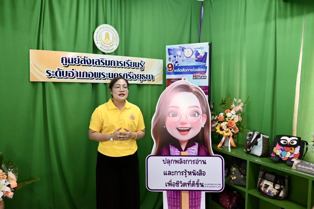 จากนั้นได้เดินทางต่อไปยัง ห้องสมุดประชาชนจังหวัดพระนครศรีอยุธยา เพื่อเยี่ยมชมและให้กำลังใจบุคลากรผู้ปฏิบัติงาน พร้อมทั้งร่วมบันทึกเทปเชิญชวนประชาชนให้หันมาอ่านหนังสือเป็นประจำ โดยอธิบดี สกร. ได้กล่าวถึง “คุณค่าของการอ่าน” ว่าเมื่อเราตั้งใจจะเริ่มต้นทำสิ่งใด การเลือก “หนังสือที่เราสนใจและถนัด” คือก้าวแรกของความสำเร็จ เพราะเมื่อใจจดจ่อกับสิ่งที่รัก สมาธิจะเกิด และการอ่านจะกลายเป็นช่วงเวลาที่เรามีความสุขที่สุด“ดิฉันมีโอกาสได้อ่านหนังสือมากมาย และเชื่อมั่นเสมอว่า ‘หนังสือ’ คือประตูแห่งความสำเร็จ ที่เปิดโอกาสให้เราได้พูดคุยกับใครก็ได้อย่างรู้เรื่อง และต่อยอดได้ตรงกับความรู้ที่แท้จริง หนังสือจึงเป็นจุดเริ่มต้นของความสำเร็จในทุกเรื่อง”มาร่วมกัน อ่านหนังสือ ปลุกพลังในตัวเอง เพื่อสร้างชีวิตที่ดีขึ้น และก้าวสู่ความสำเร็จด้วยพลังของการเรียนรู้ตลอดชีวิต