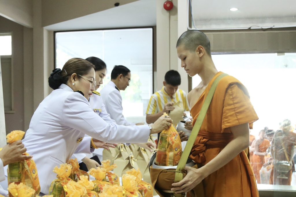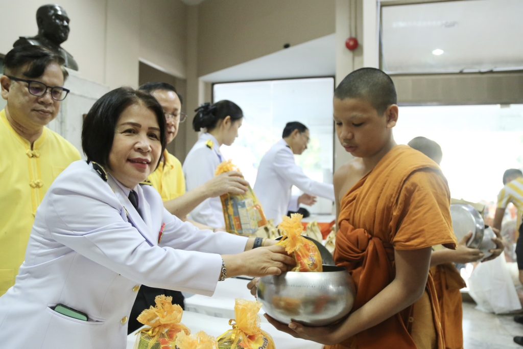 ทั้งนี้ ข้าราชการ บุคลากรทางการศึกษา และประชาชนผู้เข้าร่วมพิธีต่างพร้อมใจทำบุญตักบาตร ถวายเป็นพระราชกุศล เพื่อแสดงออกถึงความจงรักภักดีและความกตัญญูกตเวทีต่อพระมหากษัตริย์ผู้ทรงเป็นแบบอย่างแห่งความเพียร ความเสียสละ และการอุทิศตนเพื่อประชาชนชาวไทย