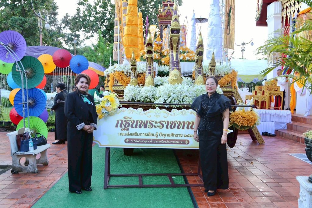 วันที่ 31 ตุลาคม 2568 นางเกศทิพย์ ศุภวานิช อธิบดีกรมส่งเสริมการเรียนรู้ เป็นประธานในพิธีสมโภชผ้าพระกฐินพระราชทานของกรมส่งเสริมการเรียนรู้ ประจำปี 2568 ณ วัดพระธาตุช้างค้ำวรวิหาร ตำบลในเวียง อำเภอเมืองน่าน จังหวัดน่าน