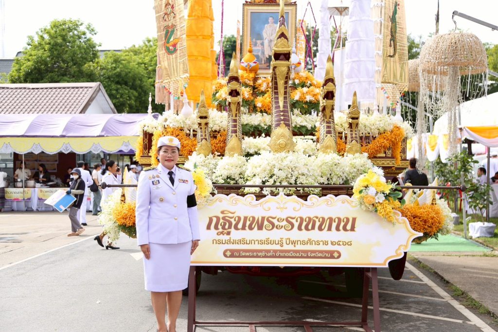 วันที่ 1 พฤศจิกายน 2568 พระบาทสมเด็จพระเจ้าอยู่หัว ทรงพระกรุณาโปรดเกล้าฯ พระราชทานผ้าพระกฐินแก่ กรมส่งเสริมการเรียนรู้ (สกร.) เพื่อนำไปทอดถวายพระภิกษุสงฆ์ผู้จำพรรษาถ้วนไตรมาส ณ วัดพระธาตุช้างค้ำวรวิหาร ตำบลในเวียง อำเภอเมืองน่าน จังหวัดน่าน