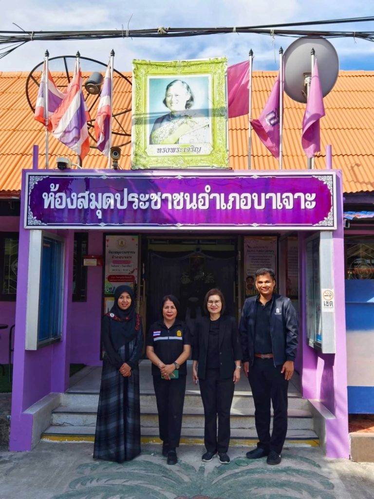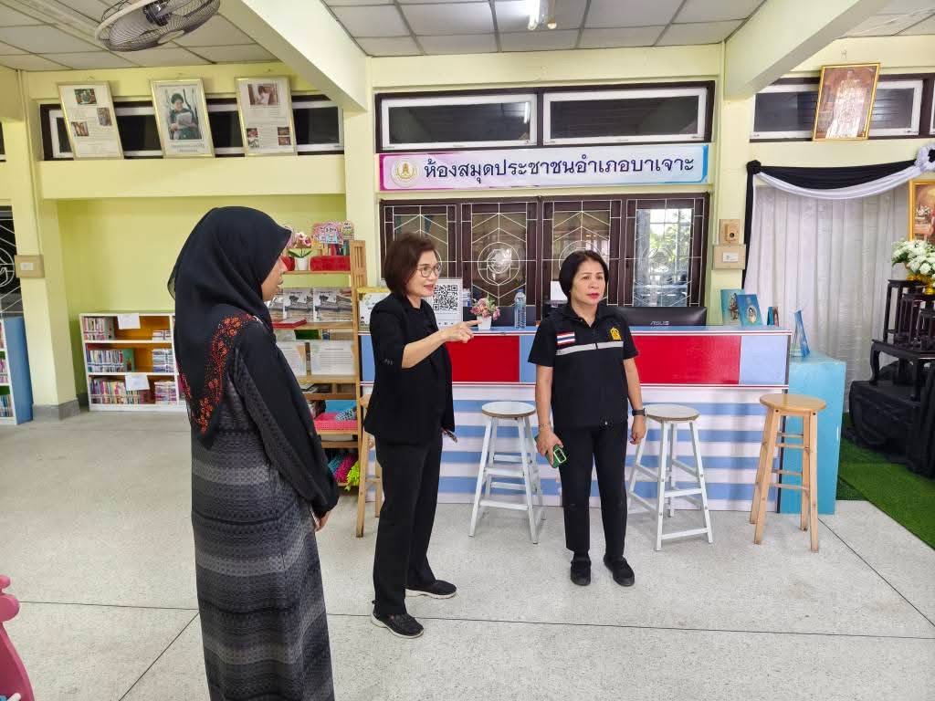 วันที่ 8 พฤศจิกายน 2568 นางยุพิน บัวคอม รองอธิบดีกรมส่งเสริมการเรียนรู้ พร้อมด้วยนางสาวนราวรรณ เวชธรรม ผู้อํานวยการสํานักงานส่งเสริมการเรียนรู้ประจําจังหวัดนราธิวาส และคณะผู้ติดตาม ลงพื้นที่ตรวจเยี่ยมห้องสมุดประชาชนอำเภอบาเจาะ เพื่อเยี่ยมชมอาคารสำนักงานและห้องสมุดประชาชนอำเภอบาเจาะ ทั้งนี้ รองอธิบดีฯได้รับฟังข้อมูลการดำเนินงานของห้องสมุดประชาชนระดับอำเภอบาเจาะอีกด้วย
