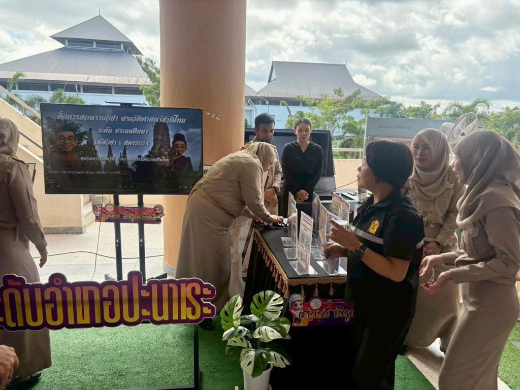 จากนั้น รัฐมนตรีว่าการกระทรวงศึกษาธิการ และคณะผู้บริหารระดับสูง สังกัด ศธ. เยี่ยมชมนิทรรศการแสดงผลงานของสถานศึกษาในสังกัดสำนักงานส่งเสริมการเรียนรู้ประจำจังหวัดปัตตานี ได้แก่