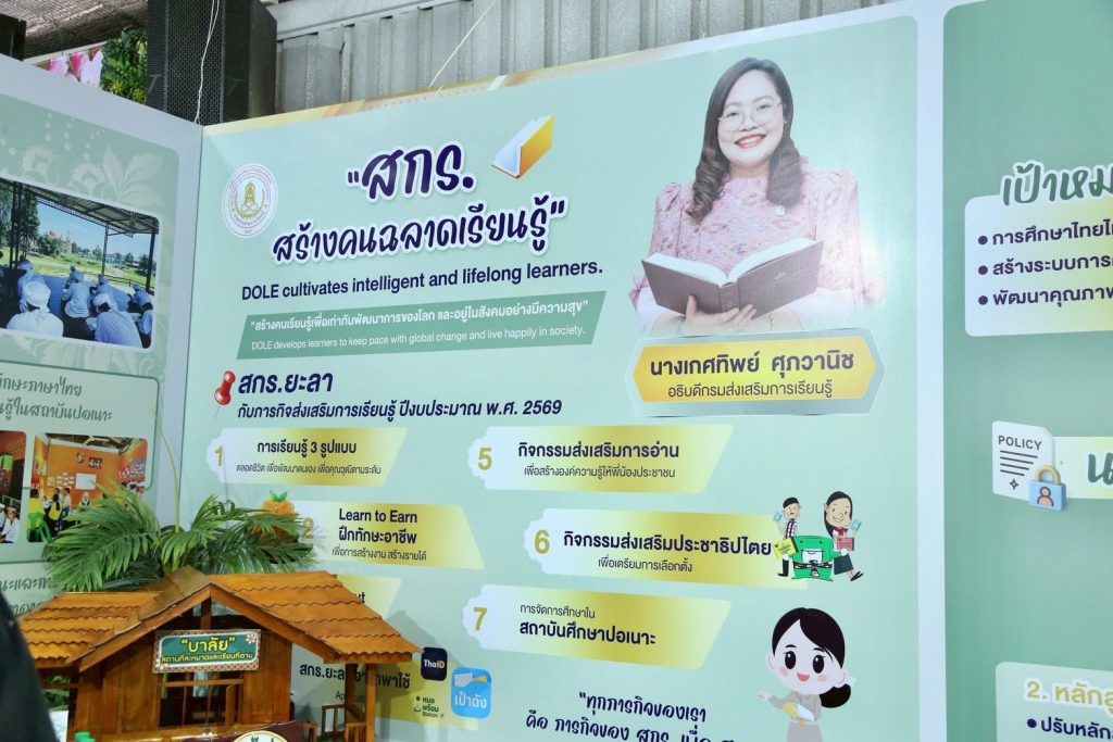 ในโอกาสนี้ สำนักงานส่งเสริมการเรียนรู้ประจำจังหวัดยะลา ได้จัดนิทรรศการนำเสนอผลการดำเนินงานส่งเสริมการเรียนรู้ในพื้นที่ ภายใต้แนวคิด“เรียนรู้เพื่อสร้างอาชีพ พัฒนาอาชีพ ยกระดับคุณภาพชีวิต” ประกอบด้วย 5 กิจกรรมหลัก ได้แก่