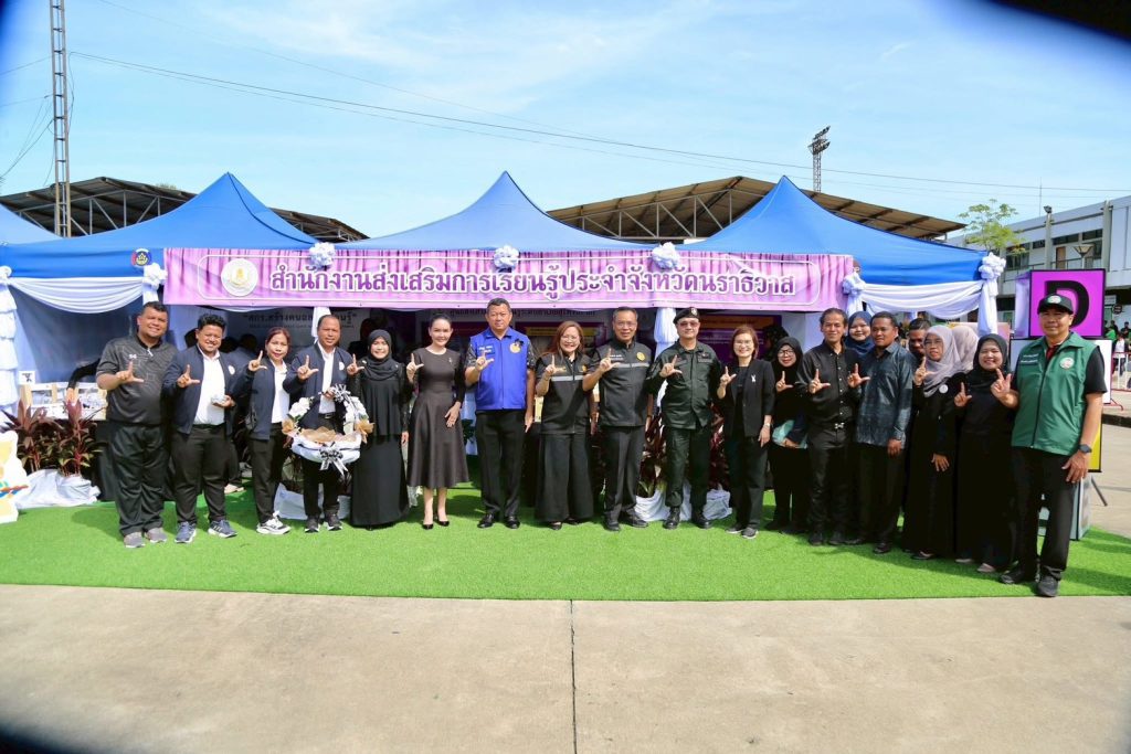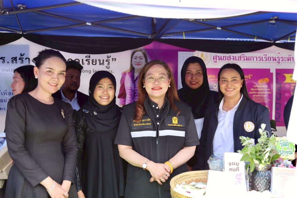 อธิบดี สกร. ร่วมภารกิจ 4 กระทรวง ลงพื้นที่นราธิวาส นำเสนอนิทรรศการส่งเสริมการเรียนรู้จากภูมิปัญญาท้องถิ่นวันที่ 9 พฤศจิกายน 2568 ดร.เกศทิพย์ ศุภวานิช อธิบดีกรมส่งเสริมการเรียนรู้ (สกร.) ร่วมภารกิจคณะของ ร้อยเอก ธรรมนัส พรหมเผ่า รองนายกรัฐมนตรีและรัฐมนตรีว่าการกระทรวงเกษตรและสหกรณ์และศาสตราจารย์ ดร.นฤมล ภิญโญสินวัฒน์ รัฐมนตรีว่าการกระทรวงศึกษาธิการ พร้อมผู้บริหารระดับสูงจาก 4 กระทรวง ได้แก่ กระทรวงเกษตรและสหกรณ์ กระทรวงศึกษาธิการ กระทรวงการพัฒนาสังคมและความมั่นคงของมนุษย์ และกระทรวงการท่องเที่ยวและกีฬา ในการลงพื้นที่จังหวัดนราธิวาส เพื่อตรวจราชการและติดตามภารกิจด้านการเกษตร การศึกษา การพัฒนาสังคม และการท่องเที่ยว ณ ลานอเนกประสงค์ (ลานคนเดิน) อำเภอสุไหงโก-ลก จังหวัดนราธิวาสโดย กรมส่งเสริมการเรียนรู้ (สกร.) ได้ร่วมจัด นิทรรศการ “การส่งเสริมการเรียนรู้จากภูมิปัญญาท้องถิ่น สู่การสร้างรายได้และคุณภาพชีวิตที่ยั่งยืน” นำเสนอผลงานเด่นจากพื้นที่จังหวัดนราธิวาส อาทิ1. สกร.ระดับอำเภอสุไหงโก-ลก นำเสนอการทำขนมไทยโบราณพื้นถิ่น “ปูตูฮาลือบอ” การแปรรูปแป้งสาคูต้น ชนิดผงและชนิดเม็ด ครองแครง ลอดช่องสิงคโปร์ ขนมสาคูเปียกมะพร้าวอ่อน ครองแครงกะทิสด ลอดช่องสิงคโปร์กะทิสดมะพร้าวอ่อน และการสาธิตการทำริบบิ้นถวายความไว้อาลัย2. สกร.ระดับอำเภอสุไหงปาดี นำเสนอการทำขนมไทยโบราณ “ขนมคนที” หรือที่บางท้องถิ่นเรียกว่า “ขนมตานี” ซึ่งเป็นขนมที่มีเอกลักษณ์โดดเด่นและมีคุณค่าทางภูมิปัญญา และการทำน้ำอัญชันโซดามะนาว ในโอกาสนี้ ศาสตราจารย์ ดร.นฤมล ภิญโญสินวัฒน์ รัฐมนตรีว่าการกระทรวงศึกษาธิการ ได้เยี่ยมชมและกล่าวชื่นชมการดำเนินงานของกรมส่งเสริมการเรียนรู้ ที่สามารถต่อยอดภูมิปัญญาท้องถิ่นให้เป็นเครื่องมือในการสร้างอาชีพและพัฒนาคุณภาพชีวิตประชาชนได้อย่างเป็นรูปธรรมสอดคล้องกับพระราชบัญญัติส่งเสริมการเรียนรู้ พ.ศ. 2566 ซึ่งมุ่งให้ประชาชนทุกกลุ่มวัยได้เรียนรู้ตามบริบทของตนเองและพื้นที่อันมีความหลากหลายทางวัฒนธรรมกิจกรรมในครั้งนี้ยังประกอบด้วยโครงการเร่งรัดผ่าตัดทำหมันสุนัขและแมว ภายใต้โครงการ “สัตว์ปลอดโรค คนปลอดภัย จากโรคพิษสุนัขบ้า” การมอบโฉนดที่ดินและปัจจัยการผลิตให้เกษตรกร รวมถึงการจำหน่ายผลิตภัณฑ์จากในพื้นที่เพื่อส่งเสริมองค์ความรู้ สนับสนุนอาชีพ และสร้างรายได้ให้แก่ชุมชนทั้งนี้จังหวัดชายแดนใต้ให้มีต้นทุนทางสังคมและวัฒนธรรมที่เข้มแข็ง การเรียนรู้จากฐานชีวิตจริงและภูมิปัญญาชุมชน คือแนวทา
