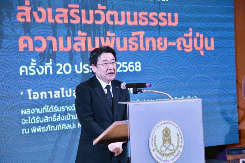 อธิบดีได้กล่าวแสดงความยินดีกับนักเรียนผู้ได้รับรางวัล พร้อมชื่นชมความงดงามของโครงการนี้ว่าเป็น “วาระสำคัญที่ช่วยสานสัมพันธ์อันดีระหว่างไทยและญี่ปุ่น” ผ่านกิจกรรมสร้างสรรค์ที่เปิดโอกาสให้เด็ก ๆ ถ่ายทอดความคิด ความฝัน และความทรงจำเกี่ยวกับทั้งสองวัฒนธรรมอย่างลึกซึ้ง จนกลายเป็น “สะพานเชื่อม” ที่นำพาจินตนาการไปสู่การเรียนรู้ และต่อยอดเป็นแรงบันดาลใจสู่อนาคตของเยาวชนไทย