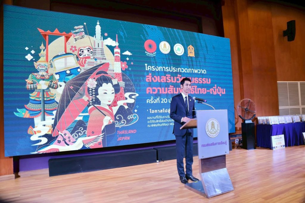 กรมส่งเสริมการเรียนรู้ (สกร.) ร่วมกับมูลนิธิเอ็มโอเอไทย จัดพิธีมอบรางวัลโครงการประกวดวาดภาพส่งเสริมวัฒนธรรมความสัมพันธ์ไทย–ญี่ปุ่น ครั้งที่ 20 ประจำปี 2568 โดยได้รับเกียรติจาก ดร.เกศทิพย์ ศุภวานิช อธิบดีกรมส่งเสริมการเรียนรู้ เป็นประธานในพิธี ณ ศูนย์ส่งเสริมและพัฒนาการเรียนรู้ทางวิทยาศาสตร์ ท้องฟ้าจำลอง กรุงเทพฯ