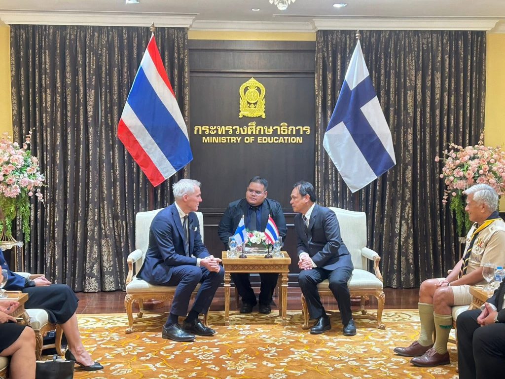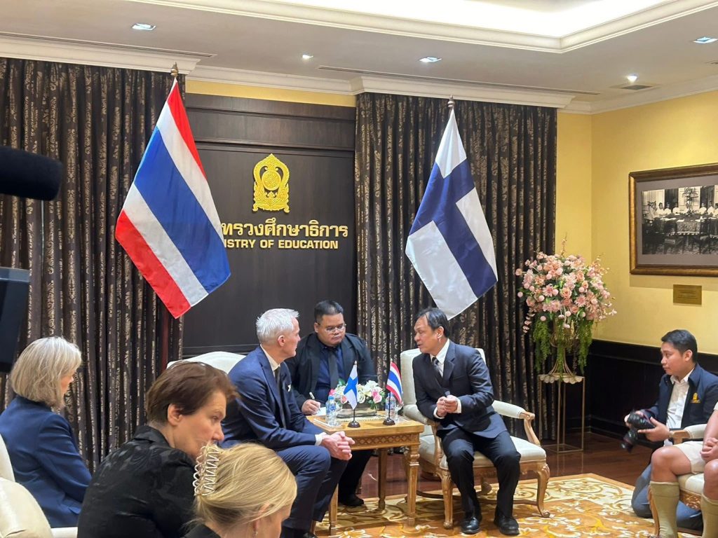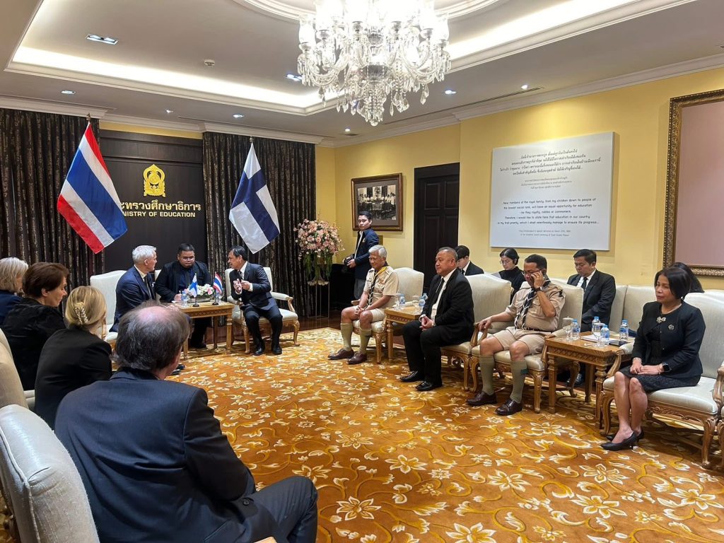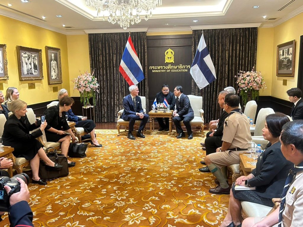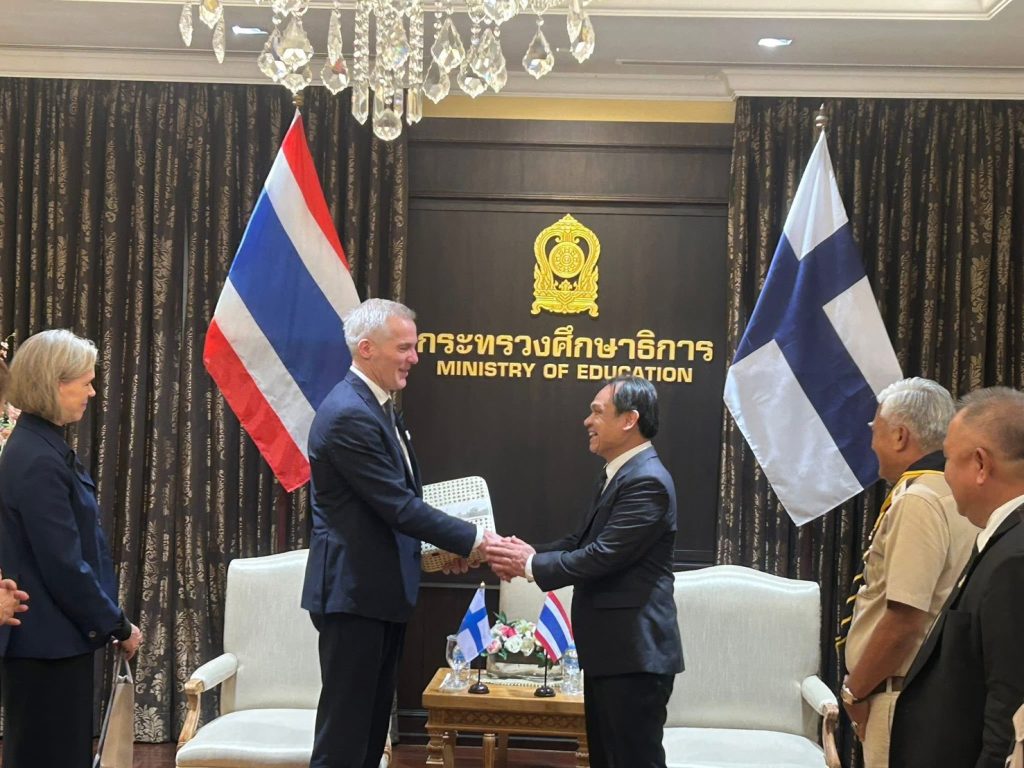 วันที่ 25 พฤศจิกายน 2568 นายองอาจ วงษ์ประยูร รัฐมนตรีช่วยว่าการกระทรวงศึกษาธิการ ให้การต้อนรับ นายแอนเดอร์ส แอดเลอร์ครอยซ์ (H.E. Mr. Anders Adlercreutz) รัฐมนตรีว่าการกระทรวงศึกษาธิการสาธารณรัฐฟินแลนด์ พร้อมด้วย เอกอัครราชทูตฟินแลนด์ประจำประเทศไทยฯ H.E.Ambassador Kristiina Kuvaja-Xanthopoulos และคณะผู้แทนระดับสูง ในโอกาสเดินทางเยือนประเทศไทยและหารือแนวทางการส่งเสริมความร่วมมือทวิภาคีด้านการศึกษา ภายใต้บันทึกความเข้าใจ (MOU) ว่าด้วยความร่วมมือด้านการศึกษาด้านการพัฒนาทักษะอาชีพ