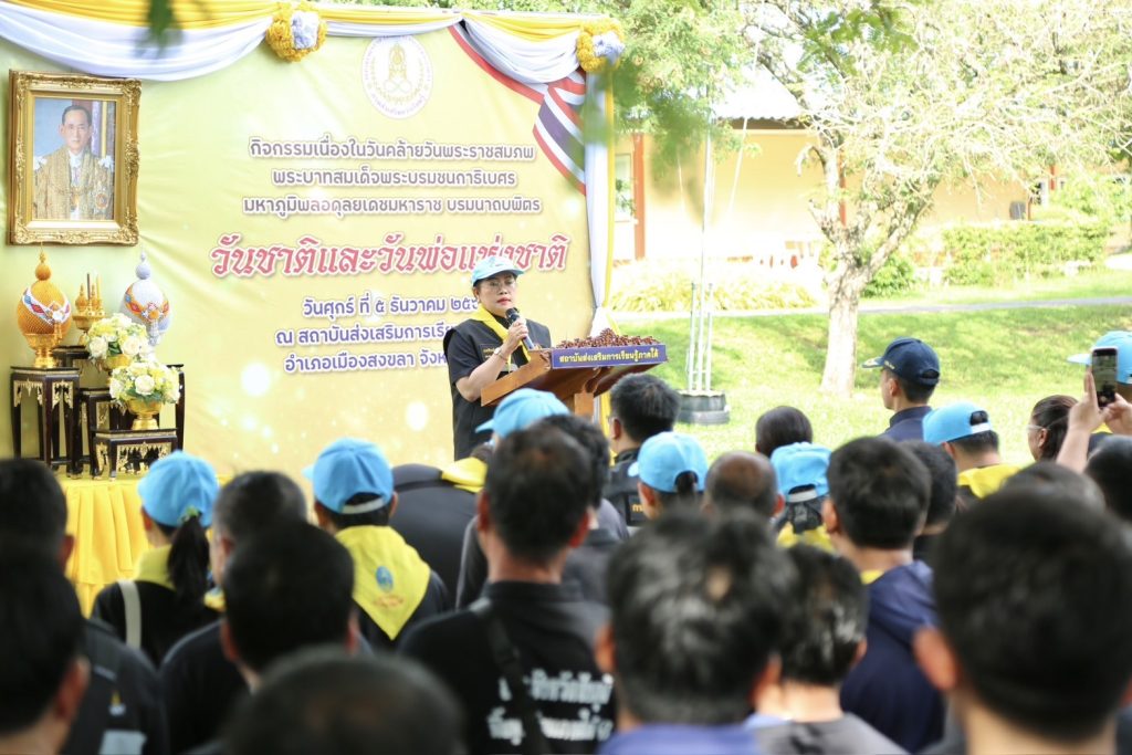 วันที่ 5 ธันวาคม 2568 ดร.เกศทิพย์ ศุภวานิช อธิบดีกรมส่งเสริมการเรียนรู้ (สกร.) ได้นำผู้บริหารและคณะจิตอาสา สกร. ร่วมประกอบกิจกรรมจิตอาสาเนื่องในวันคล้ายวันพระบรมราชสมภพ พระบาทสมเด็จพระบรมชนกาธิเบศร มหาภูมิพลอดุลยเดชมหาราช บรมนาถบพิตร วันชาติ และวันพ่อแห่งชาติ ณ สถาบันส่งเสริมการเรียนรู้ภาคใต้ จังหวัดสงขลา เพื่อแสดงความกตัญญู น้อมรำลึกในพระมหากรุณาธิคุณ และสืบสานปณิธาน “ทำความดีเพื่อพ่อหลวง”