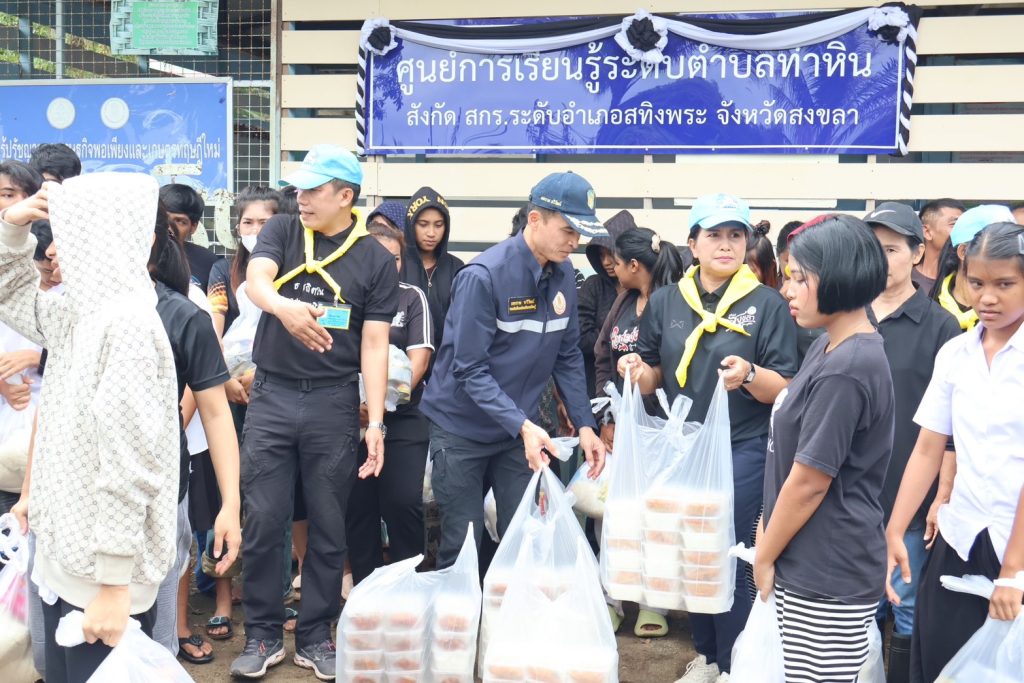 ถุงยังชีพจากมหาวิทยาลัยสงขลานครินทร์จำนวน 500 ชุด ได้ถูกจัดสรรลงสู่พื้นที่เร่งด่วนที่มีความเสียหายสูง โดยมอบให้แก่ศูนย์การเรียนรู้และชุมชน ได้แก่ ศกร.ระดับตำบลท่าหิน สกร.ระดับอำเภอสทิงพระ, สกร.ระดับอำเภอสิงหนคร, ศกร.ระดับตำบลคลองแดน สกร.ระดับอำเภอระโนด รวมถึงศกร.ระดับตำบลเชิงแส สกร.ระดับอำเภอกระแสสินธุ์ ถุงยังชีพเหล่านี้ช่วยบรรเทาความยากลำบากของครู นักศึกษา และชุมชนที่ได้รับผลกระทบโดยตรงจากระดับน้ำที่ท่วมขังหลายวัน ขณะที่ถุงยังชีพส่วนที่เหลือจะทยอยกระจายเพิ่มเติมไปยังพื้นที่อื่นซึ่งยังมีความต้องการเร่งด่วนตามลำดับความจำเป็น