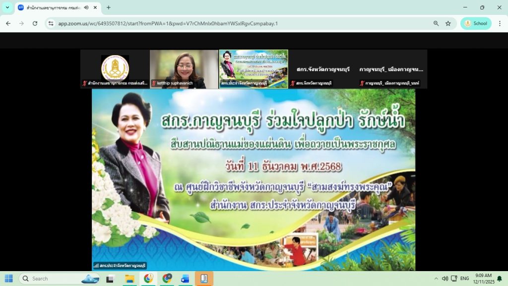 วันที่ 11 ธันวาคม 2568 ดร.เกศทิพย์ ศุภวานิช อธิบดีกรมส่งเสริมการเรียนรู้ (สกร.) เป็นประธานเปิดโครงการ “สกร. กาญจนบุรี ร่วมใจปลูกป่า รักษ์น้ำ สืบสานปณิธานแม่ของแผ่นดิน เพื่อถวายเป็นพระราชกุศล” ผ่านระบบออนไลน์ ซึ่งจัดขึ้นโดยสำนักงานส่งเสริมการเรียนรู้ประจำจังหวัดกาญจนบุรี ระหว่างวันที่ 10–11 ธันวาคม 2568 ณ ศูนย์ฝึกวิชาชีพจังหวัดกาญจนบุรี “สามสงฆ์ทรงพระคุณ” โดยมีนางพรรณวิภา ปิยัมปุตระ รองผู้ว่าราชการจังหวัดกาญจนบุรี หัวหน้าส่วนราชการ ภาคีเครือข่าย ผู้บริหาร ครู ศกร.ระดับตำบล บรรณารักษ์ และนักศึกษา เข้าร่วมอย่างพร้อมเพรียง