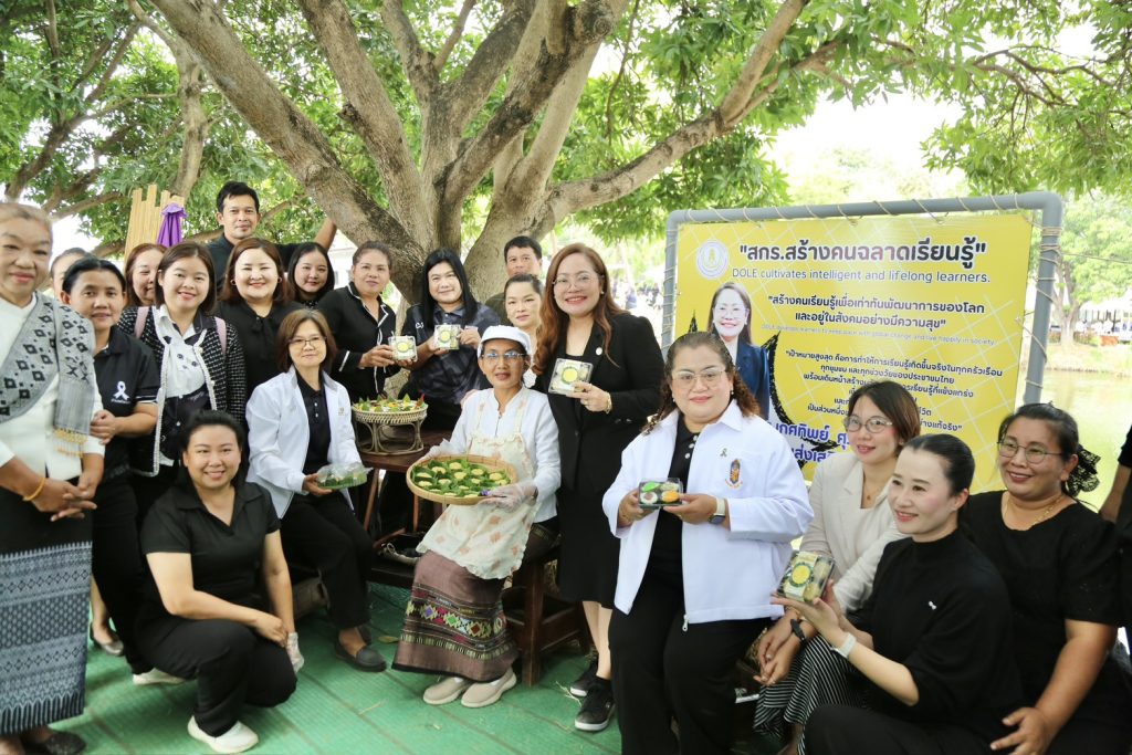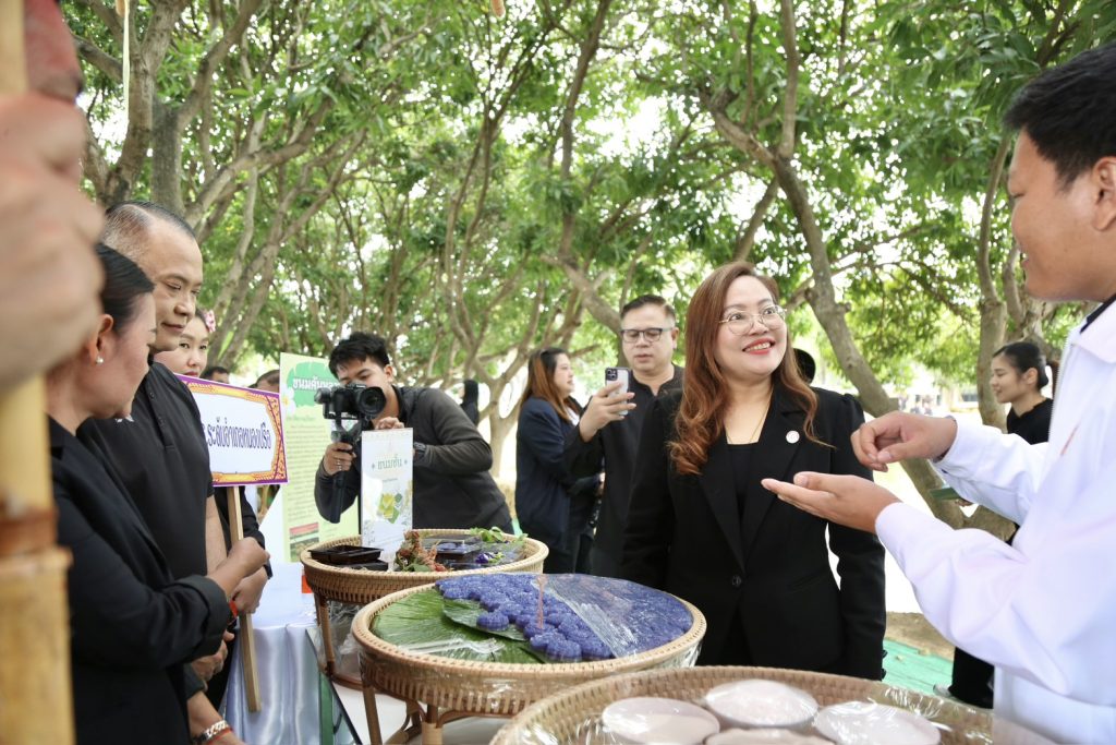 จากนั้นได้เยี่ยมชมกิจกรรม “Sweet Heritage” ซึ่งสำนักงานส่งเสริมการเรียนรู้ประจำจังหวัดกาญจนบุรีได้จัดเทศกาลขนมไทยโบราณจากทั้ง 13 อำเภออย่างครบถ้วน โดยนำเสนออัตลักษณ์ของแต่ละพื้นที่ผ่านรสชาติ ภูมิปัญญา และวัฒนธรรมที่สืบทอดกันมายาวนาน อำเภอเมืองกาญจนบุรีนำเสนอขนมช่อม่วงสีสวยประณีตและกะลอจี้ที่หอมงาและหนึบเป็นเอกลักษณ์ ขณะที่อำเภอเลาขวัญคัดสรรขนมกงทรงล้อรถโบราณทำอย่างพิถีพิถันควบคู่กับขนมก้นกระทะสูตรดั้งเดิมซึ่งหาทานได้ยากขึ้นทุกวัน
