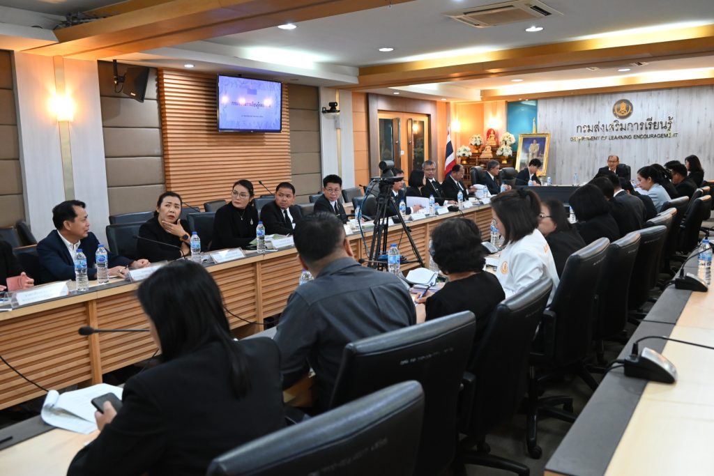 วันที่ 11 ธันวาคม 2568 นางเกศทิพย์ ศุภวานิช อธิบดีกรมส่งเสริมการเรียนรู้ เป็นประธานการประชุมคณะทำงานด้านวิชาการ ครั้งที่ 1 ณ ห้องประชุมบรรจง ชูสกุลชาติ โดยมีคณะทำงานด้านวิชาการ ผู้เชี่ยวชาญเฉพาะด้าน ผู้แทนจากสำนักนโยบายและยุทธศาสตร์ ผู้อำนวยการสำนักงานส่งเสริมการเรียนรู้ประจำจังหวัด และผู้อำนวยการศูนย์ส่งเสริมการเรียนรู้ระดับอำเภอจากพื้นที่ต่าง ๆ เข้าร่วมประชุม เพื่อหารือทิศทางการพัฒนางานด้านวิชาการให้มีคุณภาพ มาตรฐาน และสามารถขับเคลื่อนการเรียนรู้ให้เข้าถึงประชาชนได้อย่างกว้างขวางยิ่งขึ้น
