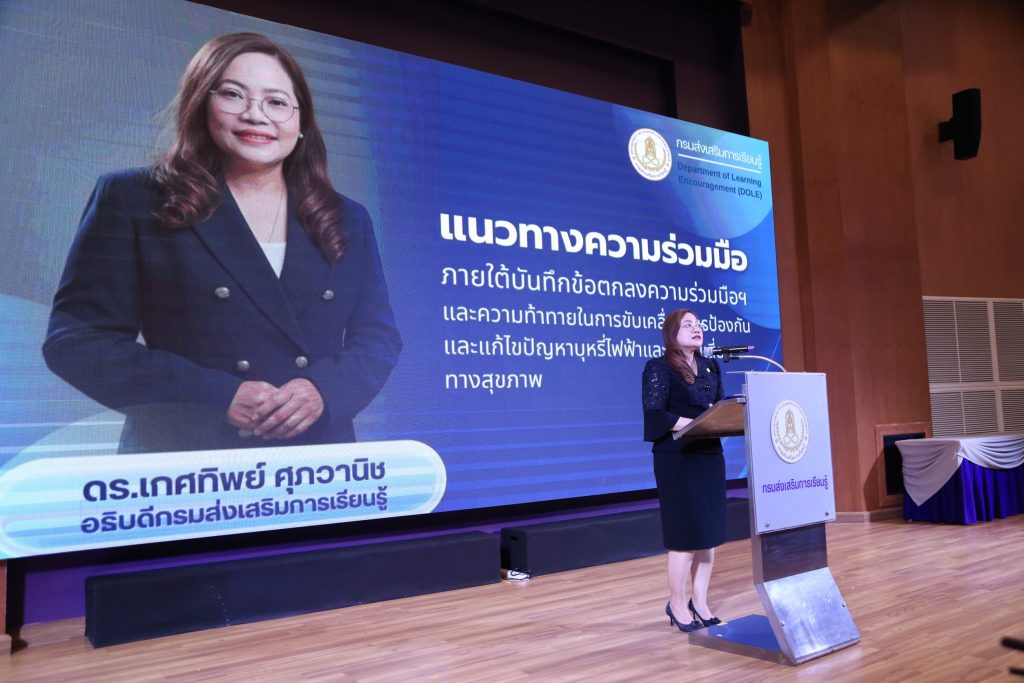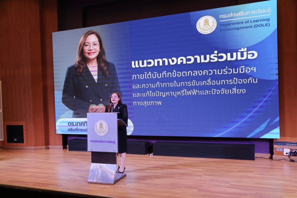 ดร.เกศทิพย์ ศุภวานิช อธิบดีกรมส่งเสริมการเรียนรู้ กล่าวว่า ปัญหาบุหรี่ไฟฟ้าไม่ใช่เพียงประเด็นด้านสุขภาพเท่านั้น แต่เป็นปัญหาที่ส่งผลกระทบโดยตรงต่อคุณภาพชีวิต การเรียนรู้ และอนาคตของเยาวชนไทย ความร่วมมือในครั้งนี้จึงไม่ใช่เพียงพิธีลงนาม แต่เป็นการประกาศเจตนารมณ์ร่วมกันในการใช้ “การเรียนรู้” เป็นเครื่องมือสำคัญในการป้องกันปัญหาเชิงรุกตั้งแต่ต้นทาง