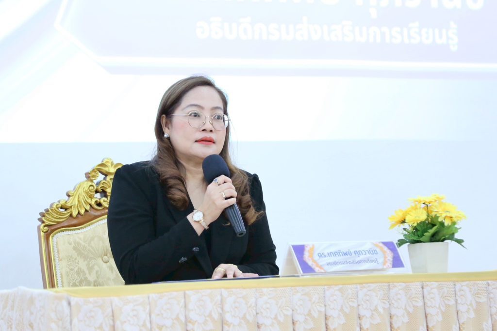 อธิบดีกรมฯ กล่าวว่า “เราไม่ใช่แค่ครูที่สอนเพื่อให้ได้วุฒิการศึกษา แต่เราคือความหวังของสังคมในการพัฒนาตนเองและการเรียนรู้ตลอดชีวิต” พร้อมกระตุ้นให้บุคลากรเริ่มต้นจากการพัฒนาตนเอง เปลี่ยน “ความไม่รู้” เป็น “รู้จริง” ก่อนส่งต่อองค์ความรู้ให้กับชุมชน