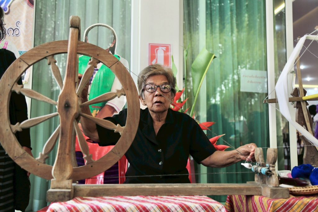 นิทรรศการส่งเสริมและพัฒนาอาชีพสะท้อนการใช้ภูมิปัญญาและอัตลักษณ์ท้องถิ่นสร้างอาชีพ ได้แก่ ผ้ามอญทอมือ อำเภอบ้านโป่ง และความร่วมมือพัฒนาอาชีพระหว่าง สกร.บ้านโป่ง กับบริษัท SCG เพื่อเพิ่มทักษะอาชีพและรายได้ชุมชน