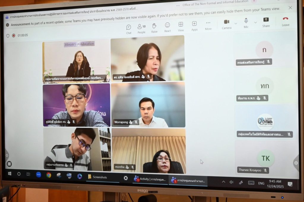 วันที่ 24 ธันวาคม 2568 นางเกศทิพย์ ศุภวานิช อธิบดีกรมส่งเสริมการเรียนรู้ (สกร.) เป็นประธานการประชุมคณะทำงานการประเมินผลการปฏิบัติราชการของกรมส่งเสริมการเรียนรู้ ประจำปีงบประมาณ พ.ศ. 2569 – 2570 ครั้งที่ 1 เพื่อวางรากฐานการทำงานเชิงรุกและยกระดับประสิทธิภาพองค์กรอย่างเป็นระบบ โดยมี นางยุพิน บัวคอม รองอธิบดีกรมส่งเสริมการเรียนรู้ นางสาวกาญจนาภรณ์ มุขดารา ที่ปรึกษาอธิบดีกรมส่งเสริมการเรียนรู้ ผู้อำนวยการกลุ่มศูนย์/ส่วนกลาง และเจ้าหน้าที่ที่เกี่ยวข้องร่วมประชุมอย่างพร้อมเพรียง ณ ห้องประชุมหม่อมหลวงมานิจ ชุมสาย สำนักความสัมพันธ์ต่างประเทศ สำนักงานปลัดกระทรวงศึกษาธิการ
