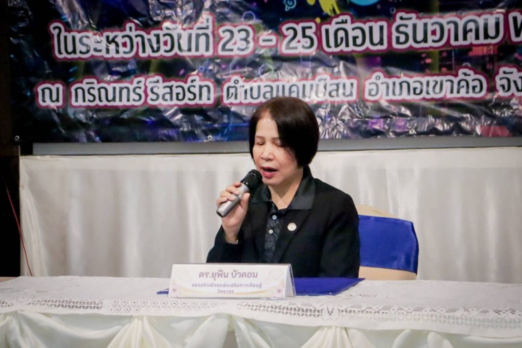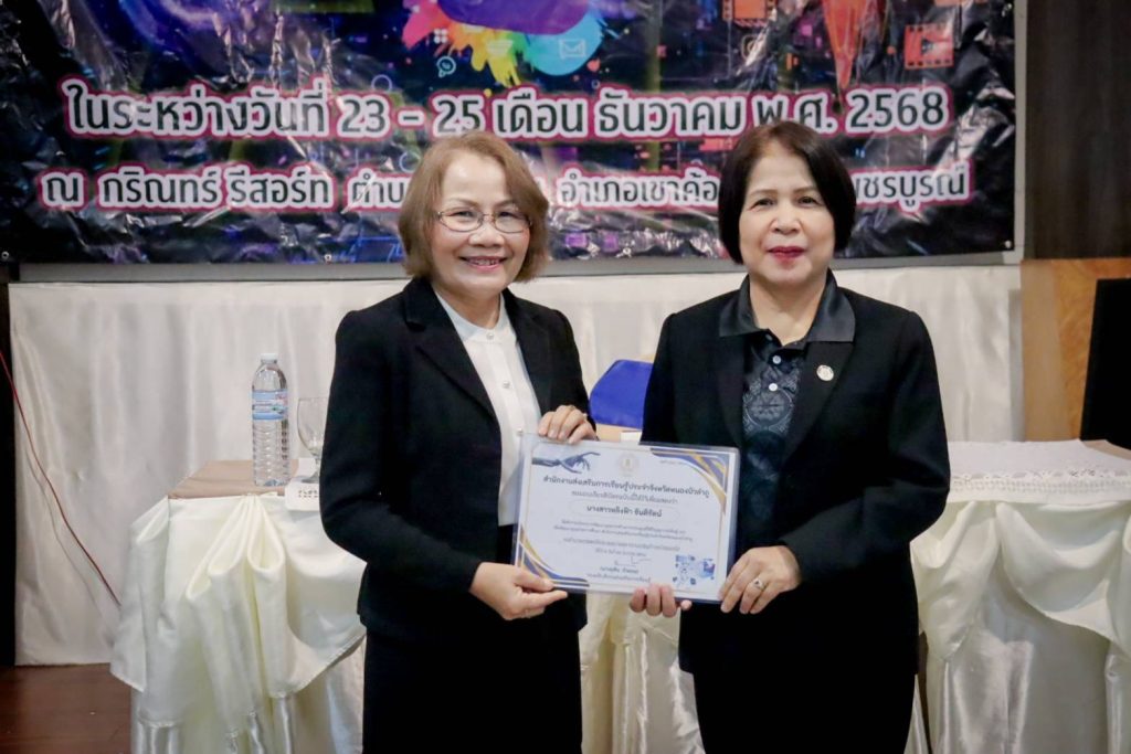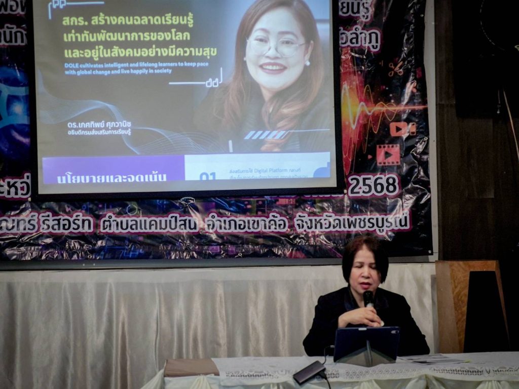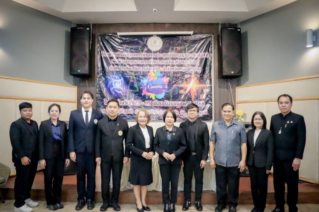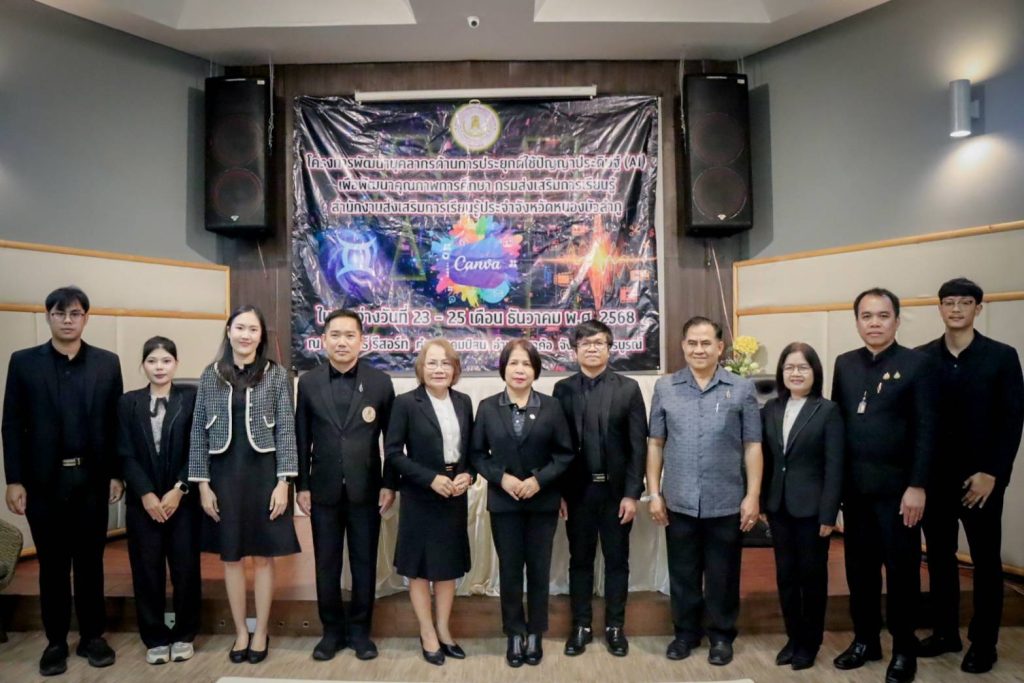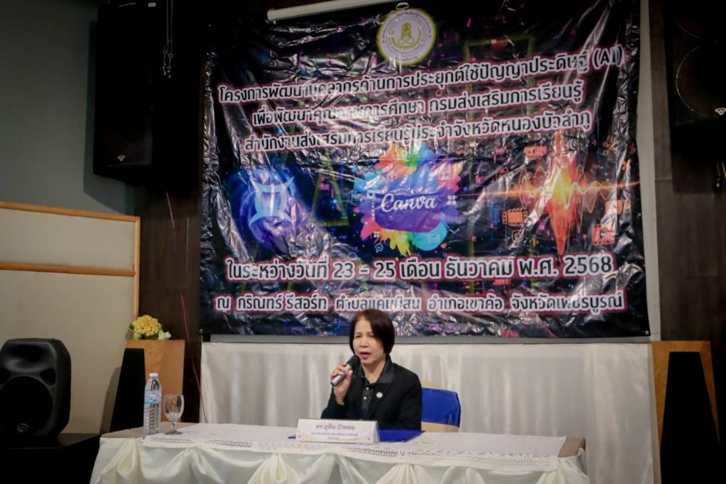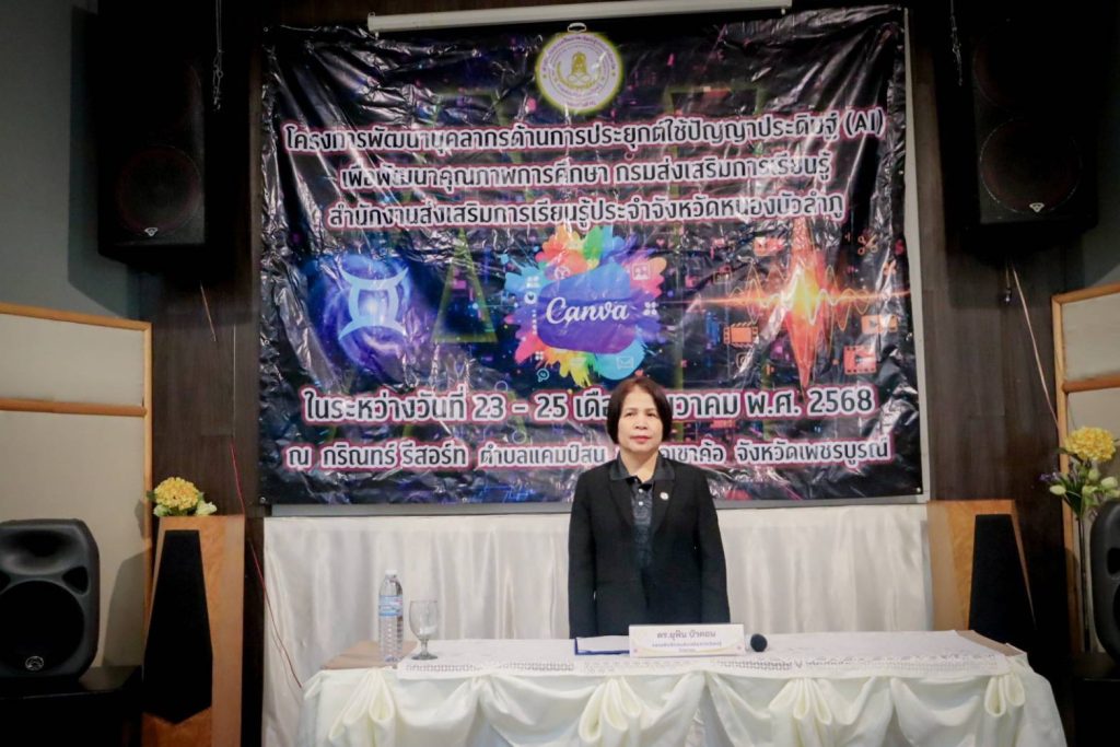 เมื่อ 23 ธันวาคม 2568 นางยุพิน บัวคอม รองอธิบดีกรมส่งเสริมการเรียนรู้ เป็นประธานในพิธีเปิด “โครงการพัฒนาบุคลากรด้านการประยุกต์ใช้ปัญญาประดิษฐ์ (AI) เพื่อพัฒนาคุณภาพการศึกษา” ของสำนักงานส่งเสริมการเรียนรู้ประจำจังหวัดหนองบัวลำภู ซึ่งจัดขึ้นระหว่างวันที่ 23 – 25 ธันวาคม 2568 นำโดย นางหลิงฟ้า ขันติรัตน์ ผู้อำนวยการสำนักงาน สกร.ประจำจังหวัดหนองบัวลำภู รองผู้อำนวยการ ฯ ผู้อำนวยการ สกร. ระดับอำเภอ ข้าราชการครู และบุคลากรในสังกัด สำนักงาน สกร. จังหวัดหนองบัวลำภู ณ กริณทร์ รีสอร์ท อำเภอเขาค้อ จังหวัดเพชรบูรณ์ เพื่อให้การพัฒนาคุณภาพการศึกษาให้เท่าทันเทคโนโลยีโลกยุคใหม่ มุ่งเป้าสร้างการเรียนรู้ที่ยั่งยืน