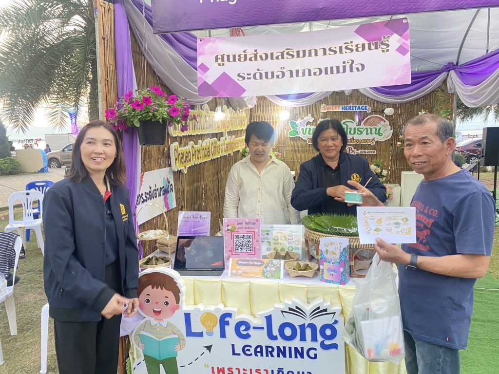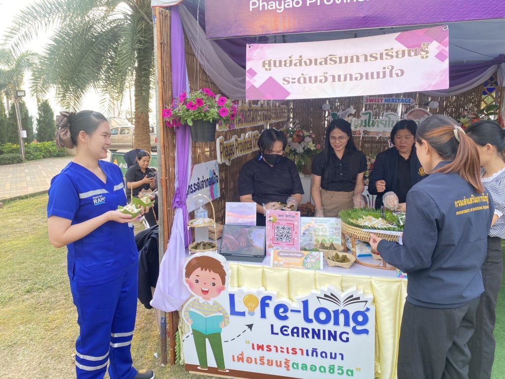 วันที่ 30 ธันวาคม 2568 สำนักงานส่งเสริมการเรียนรู้ประจำจังหวัดพะเยา เข้าร่วมจัดแสดงนิทรรศการ “ขนมไทยโบราณหายาก – Sweet Heritage” ภายในงาน Amazing Thailand Payao Countdown Flora Fest 2026 นำเสนอเรื่องราว วิถีวัฒนธรรม และภูมิปัญญาท้องถิ่นล้านนา ผ่านขนมไทยพื้นบ้านที่กำลังเลือนหาย พร้อมกิจกรรมสาธิตการทำขนม การส่งเสริมการอ่านเชิงอาชีพ และการจำหน่ายผลิตผลจากชุมชนบนพื้นที่สูง โดยมีประชาชนและนักท่องเที่ยวให้ความสนใจร่วมชมและทดลองทำขนมอย่างต่อเนื่องตลอดทั้งวัน