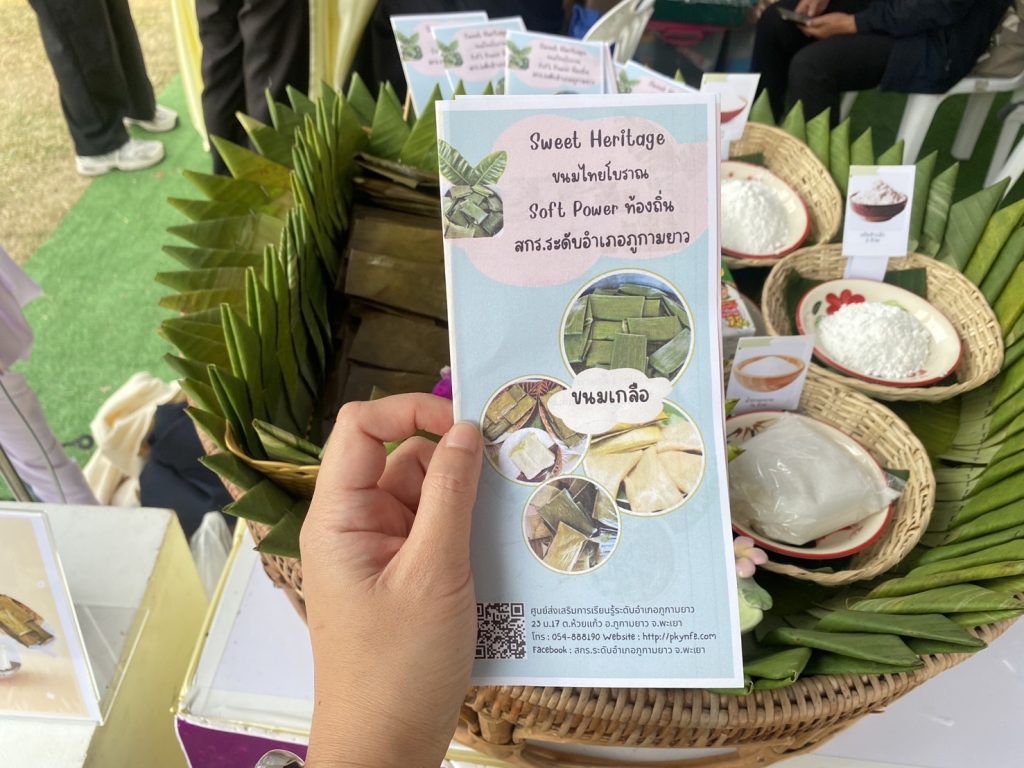 บูธนิทรรศการในครั้งนี้ประกอบด้วยผลงานจากสำนักงานส่งเสริมการเรียนรู้ระดับอำเภอทั้ง 3 แห่ง ได้แก่ อำเภอปง แม่ใจ และภูกามยาว ซึ่งร่วมกันนำเสนออัตลักษณ์ของแต่ละพื้นที่ผ่านขนมพื้นบ้านที่สอดแทรกเรื่องราว วัตถุดิบ วิถีชีวิต และความเชื่อของชุมชน มีรายละเอียด ดังนี้