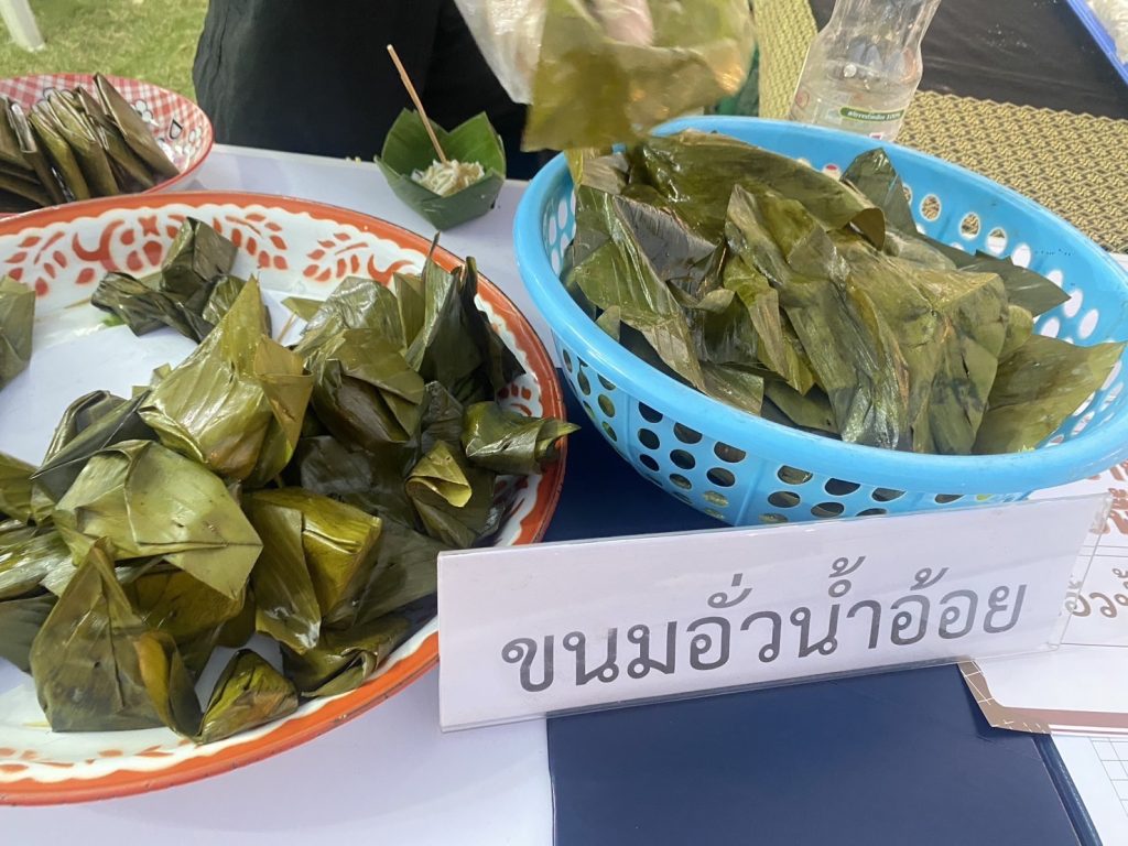 • สกร.ระดับอำเภอปง นำเสนอบูธนิทรรศการ “ขนมอั่วน้ำอ้อย” ขนมพื้นบ้านล้านนาที่ใช้น้ำอ้อยคั้นสดจากธรรมชาติให้ความหวานแทนน้ำตาล เป็นสัญลักษณ์ของการใช้วัตถุดิบอย่างคุ้มค่าและเรียบง่ายตามวิถีท้องถิ่น พร้อมเปิดสาธิตการทำขนมและให้ประชาชนร่วมทดลองทำจริง เพื่อให้เกิดการเรียนรู้ที่นำไปต่อยอดอาชีพได้อย่างเป็นรูปธรรม นอกจากนั้นยังร่วมจำหน่ายสินค้าชุมชนจากศูนย์การเรียนชุมชนชาวไทยภูเขา “แม่ฟ้าหลวง” บ้านสันติสุข ได้แก่ น้ำผึ้งป่าจากดอกไม้หลายชนิดที่ไม่ผ่านการปรุงแต่ง และลูกชิดป่าจากผลไม้พื้นถิ่น ซึ่งสะท้อนการใช้ทรัพยากรธรรมชาติอย่างรู้คุณค่าควบคู่ไปกับการอนุรักษ์ป่าและสร้างรายได้แก่คนในชุมชน