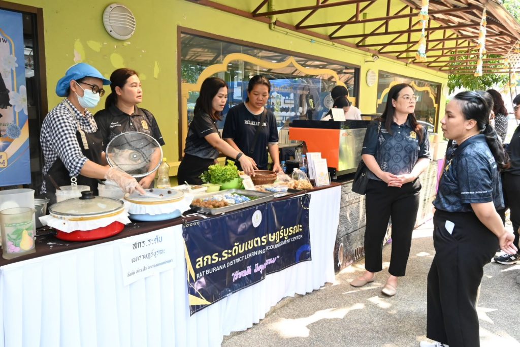 ภายในกิจกรรม ศูนย์ส่งเสริมการเรียนรู้ระดับเขตราษฎร์บูรณะได้นำผลิตภัณฑ์เด่นของชุมชนมาจัดแสดงและจำหน่าย ได้แก่ สาคูไส้หมู ข้าวเกรียบปากหม้อ และสลัดโรล ซึ่งสะท้อนการบูรณาการองค์ความรู้ด้านอาชีพ การพัฒนาทักษะฝีมือ และการต่อยอดภูมิปัญญาท้องถิ่นสู่การสร้างรายได้จริงให้กับประชาชนในพื้นที่