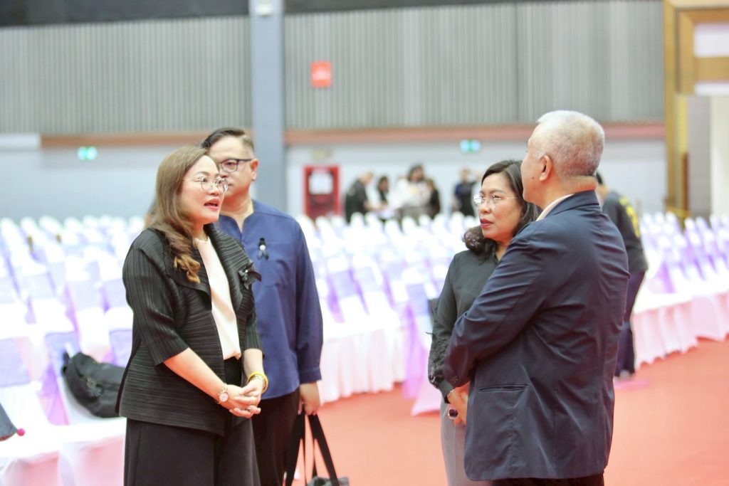 ในการนี้ อธิบดี สกร. ได้ตรวจเยี่ยมการซักซ้อมลำดับขั้นตอนพิธีการ ตั้งแต่การรับเสด็จ พิธีการภายในห้องประชุม การนำเสนอในแต่ละช่วง ตลอดจนตรวจความเรียบร้อยของการจัดนิทรรศการและพื้นที่จัดแสดงต่าง ๆ เพื่อให้การดำเนินงานเป็นไปอย่างถูกต้อง สมบูรณ์ และสมพระเกียรติสูงสุด