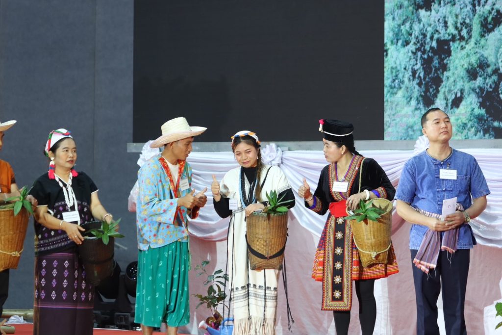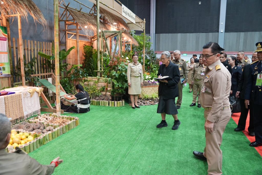 ทอดพระเนตรการแสดงเทิดพระเกียรติชุด “ป่าของแผ่นดิน ป่าของชีวิต” โดยผู้เรียนจากศูนย์ส่งเสริมการเรียนรู้ระดับอำเภออมก๋อย จังหวัดเชียงใหม่ และทอดพระเนตรนิทรรศการเฉลิมพระเกียรติ นิทรรศการการเรียนรู้เพื่อการอนุรักษ์ป่า และนิทรรศการต่อยอดการสร้างรายได้จากเครือข่ายภาครัฐและเอกชน อาทิ– บริษัทคั้นกี่น้ำเต้าทอง จำกัด– บริษัทพนาพัฒน์ เฮลท์แคร์ จำกัด– บริษัทอุตสาหกรรมเครื่องหอมไทย-จีน จำกัด– กรมการแพทย์แผนไทยและการแพทย์ทางเลือก– ศูนย์นวัตกรรมสมุนไพร มหาวิทยาลัยแม่ฟ้าหลวง– สมาคมกาแฟคัดพิเศษไทย