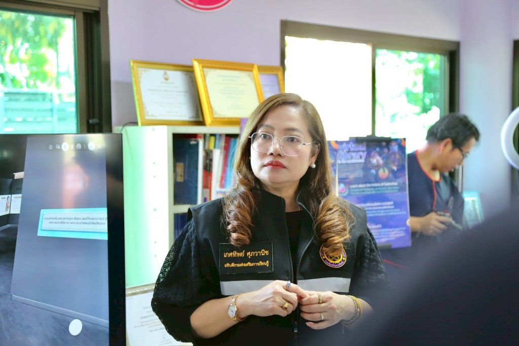 หลังจากนั้น อธิบดีได้เยี่ยมชมการจัดกิจกรรมของ ห้องสมุดประชาชน “เฉลิมราชกุมารี” อำเภอสวรรคโลก จังหวัดสุโขทัย ซึ่งมีการจัดหลักสูตรการเรียนรู้ตามความต้องการของผู้เรียน เพื่อสร้างทักษะอาชีพที่ยั่งยืน อาทิ การทำตลาดออนไลน์ การส่งเสริมทักษะดิจิทัล และการใช้นวัตกรรม AI มาสนับสนุนการค้นคว้า พร้อมทั้งกล่าวถึงความสำคัญของการเห็นคุณค่าในตนเอง และการมีปฏิสัมพันธ์ระหว่างมนุษย์ที่เทคโนโลยีไม่สามารถทดแทนได้