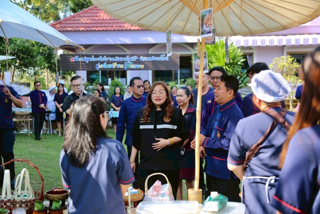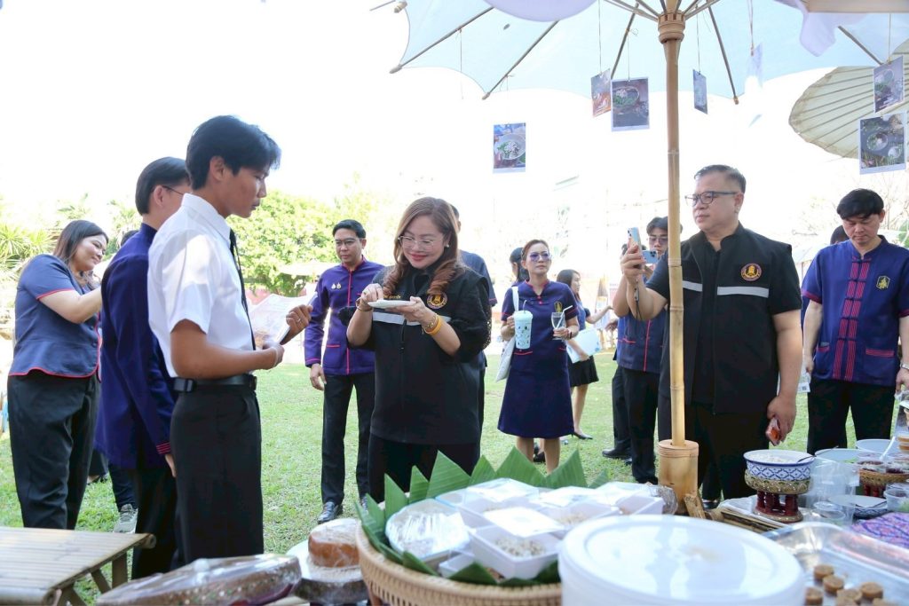 โอกาสนี้ อธิบดี สกร. ได้เยี่ยมชมนิทรรศการและกิจกรรมสาธิตการทำขนมพื้นเมือง พร้อมร่วมทดลองทำด้วยตนเองร่วมกับคณะครูและนักศึกษา ซึ่งเป็นขนมท้องถิ่นที่สะท้อนอัตลักษณ์และมรดกทางวัฒนธรรมของชุมชน โดยกิจกรรมมุ่งส่งเสริมการต่อยอดภูมิปัญญาให้สอดคล้องกับวิถีชีวิตยุคใหม่ อาทิ การพัฒนาสูตรขนมเพื่อสุขภาพ ผ่านการปรับลดน้ำตาลหรือใช้สารทดแทน เพื่อให้ตอบโจทย์ผู้บริโภคยุคใหม่ และยกระดับองค์ความรู้ด้านการทำขนมให้เป็น ทักษะอาชีพใหม่ (New Skill) ที่สามารถสร้างรายได้จริงให้กับคนในชุมชน