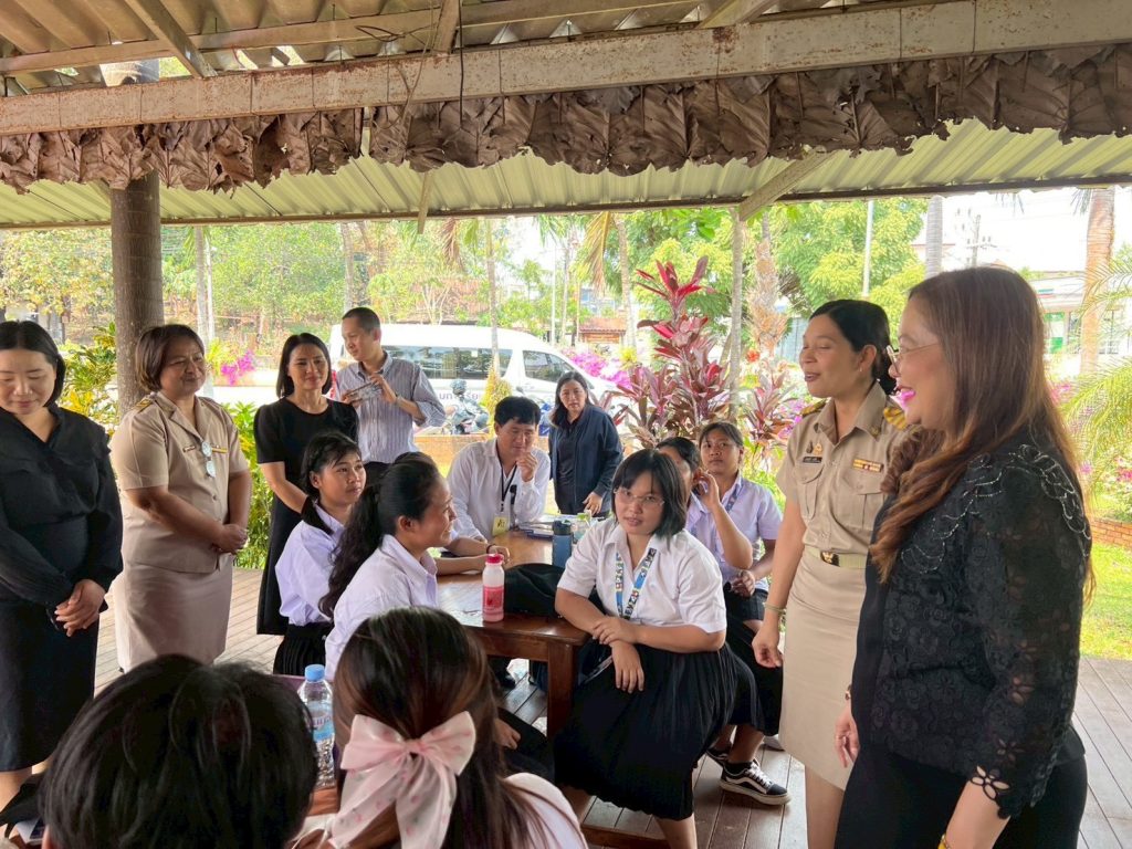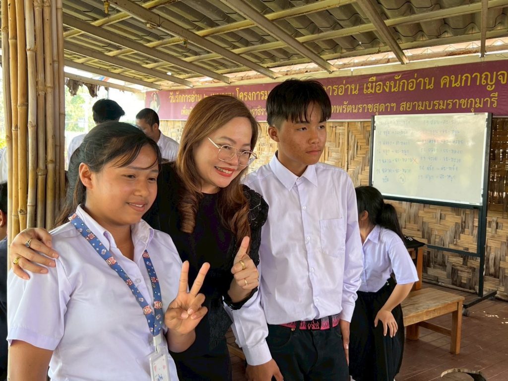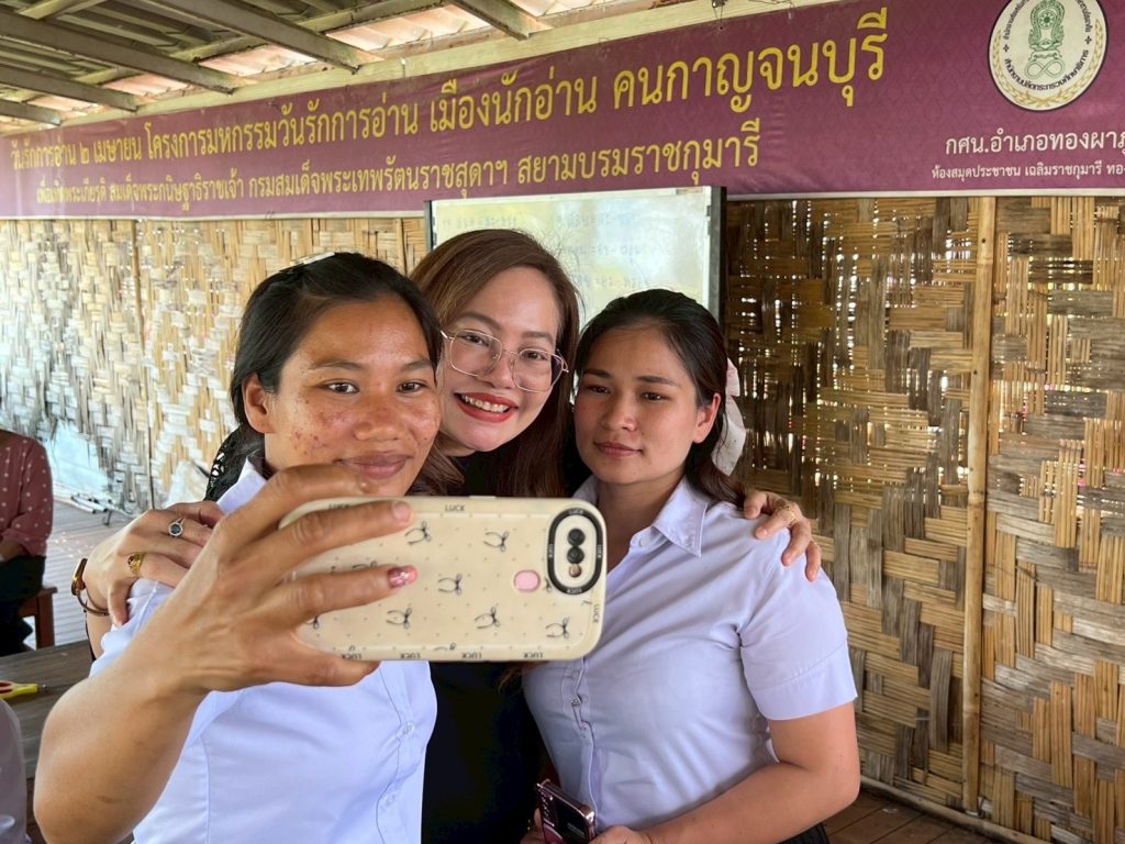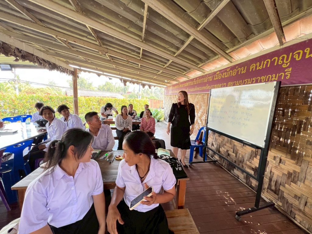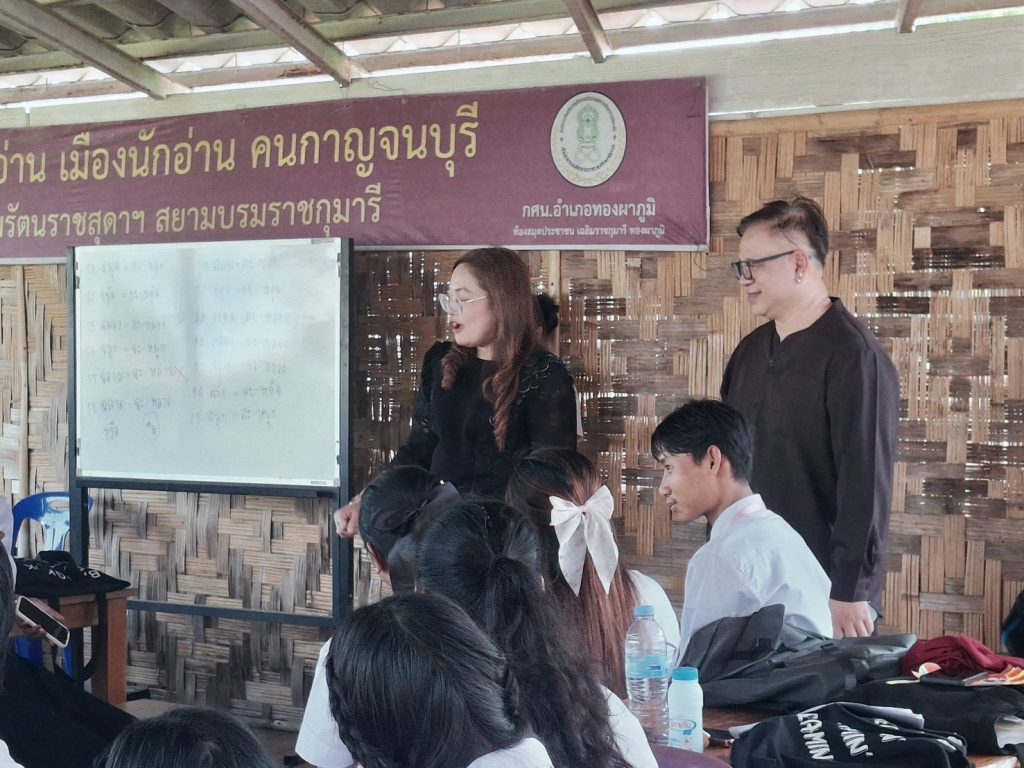 นอกจากนี้ อธิบดี สกร. ยังได้พบปะกลุ่มผู้เรียนจากกลุ่มชาติพันธุ์ในพื้นที่อำเภอทองผาภูมิ จำนวนทั้งสิ้น 44 คน ซึ่งประกอบด้วย กลุ่มไทย กระเหรี่ยง เมียนมาร์ และมอญ โดยเป็นกลุ่มผู้ไม่รู้หนังสือไทยที่เข้าร่วมกิจกรรมการเรียนรู้ร่วมกันในวันดังกล่าว อธิบดีได้ทักทาย พูดคุยสอบถาม และเปิดโอกาสให้ผู้เรียนทุกคนได้สะท้อนความต้องการในการพัฒนาตนเอง รวมถึงแจ้งความประสงค์ในการเรียนรู้เพิ่มเติม ท่ามกลางบรรยากาศที่เป็นมิตร อบอุ่น และสร้างกำลังใจให้แก่ผู้เรียนอย่างยิ่ง