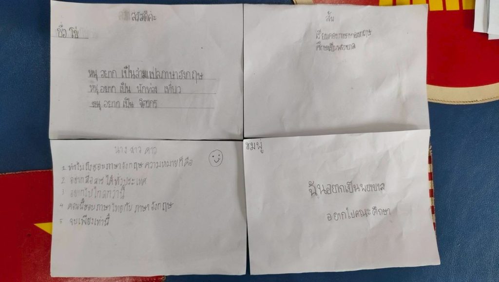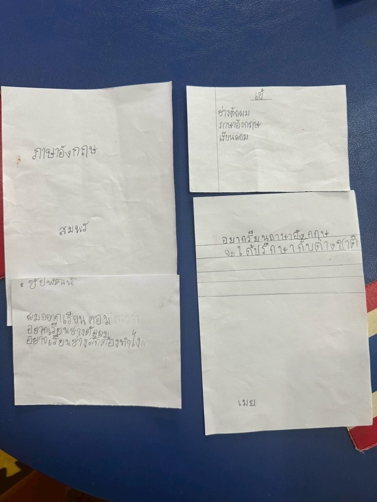 ทั้งนี้ ผู้เรียนได้แสดงความตั้งใจและความสนใจในการเรียนรู้เพิ่มเติมในหลายด้าน ได้แก่ ภาษาอังกฤษ 19 คน, คอมพิวเตอร์ 7 คน, เสริมสวย 7 คน, ช่างตัดผม 2 คน, ภาษาไทย 2 คน, หมอและพยาบาล 2 คน, ภาษาญี่ปุ่น 1 คน, ภาษาเกาหลี 1 คน, ตำรวจ 1 คน, การเรียนรู้ออนไลน์ 1 คน และบัญชี 1 คน สะท้อนถึงความมุ่งมั่นในการพัฒนาทักษะเพื่อยกระดับคุณภาพชีวิตและสร้างโอกาสในอนาคต