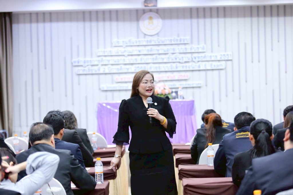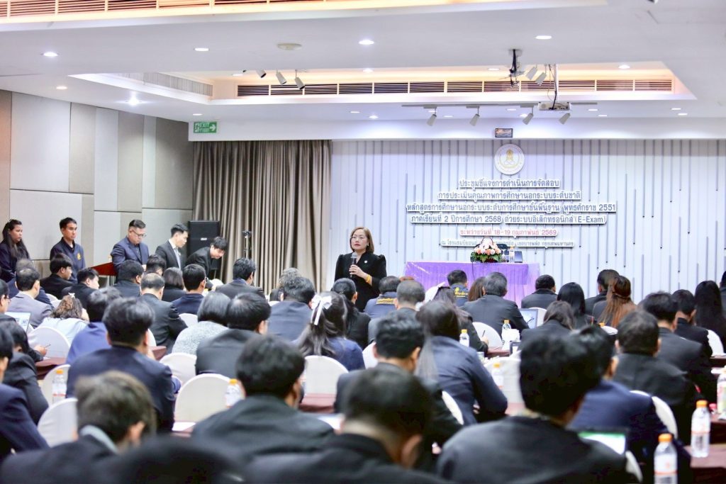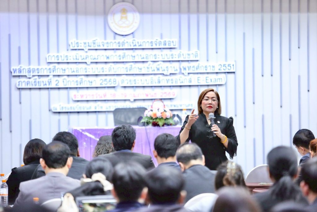 วันที่ 18 กุมภาพันธ์ 2569 ดร.เกศทิพย์ ศุภวานิช อธิบดีกรมส่งเสริมการเรียนรู้ (สกร.) เป็นประธานเปิดการประชุมชี้แจงแนวทางการดำเนินงานจัดสอบวัดความรู้ด้วยระบบอิเล็กทรอนิกส์ (E-Exam) ภาคเรียนที่ 2 ปีการศึกษา 2568 โดยมีผู้บริหารและเจ้าหน้าที่ผู้รับผิดชอบการจัดสอบจากทั่วประเทศเข้าร่วมประชุมรวม 149 คน จัดประชุมทั้งในรูปแบบ On-site และ Online ณ โรงแรมบียอนด์ สวีท บางพลัด กรุงเทพมหานคร และผ่านระบบ Zoom เพื่อเตรียมความพร้อมในการดำเนินการจัดสอบเยียวยาให้แก่ผู้เรียนที่พลาดโอกาสในการสอบ N-NET เมื่อวันที่ 14–15 กุมภาพันธ์ 2569 ที่ผ่านมา ซึ่งมีสถิติผู้เข้าสอบประมาณ ร้อยละ 80