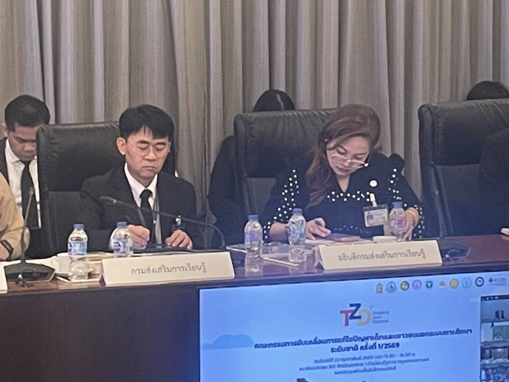 กรมส่งเสริมการเรียนรู้ (สกร.) เข้าร่วมการประชุมคณะกรรมการระดับชาติ ครั้งที่ 1/2569 เพื่อขับเคลื่อนนโยบาย Thailand Zero Dropout PLUS อย่างเป็นรูปธรรม โดยมี พลตำรวจเอก เพิ่มพูน ชิดชอบ เป็นประธานกรรมการ พร้อมด้วยผู้บริหารระดับสูงจากหน่วยงานที่เกี่ยวข้องเข้าร่วมอย่างพร้อมเพรียง ขณะที่ผู้จัดการ กองทุนเพื่อความเสมอภาคทางการศึกษา (กสศ.) ปฏิบัติหน้าที่กรรมการและเลขานุการ และ ดร.เกศทิพย์ ศุภวานิช อธิบดีกรมส่งเสริมการเรียนรู้ ในฐานะกรรมการและเลขานุการร่วม เข้าร่วมประชุมและผลักดันการดำเนินงานเชิงนโยบายร่วมกัน