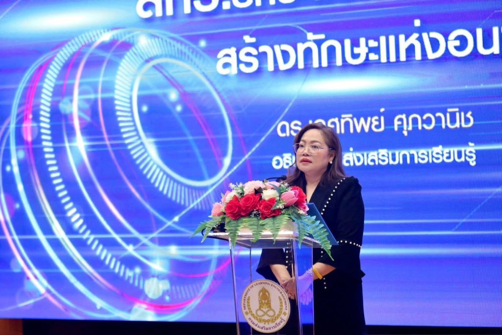 ดร.เกศทิพย์ ศุภวานิช อธิบดีกรมส่งเสริมการเรียนรู้ เปิดเผยว่า โลกยุคดิจิทัลได้เปลี่ยนรูปแบบการดำรงชีวิตและการทำงานอย่างรวดเร็ว การพัฒนาคนจึงต้องมุ่งสร้าง “ทักษะที่ใช้ได้จริง” ควบคู่กับความรู้ทางวิชาการ ภารกิจของ สกร. ในวันนี้ ไม่ได้จำกัดอยู่เพียงการมอบคุณวุฒิทางการศึกษา แต่คือการเสริมสร้างวินัยทางการเงิน ความสามารถในการวางแผนชีวิต และทักษะการสร้างรายได้ในบริบทเศรษฐกิจใหม่ เพื่อให้ประชาชนสามารถยืนหยัดได้อย่างมั่นคงในโลกที่เปลี่ยนแปลงตลอดเวลา