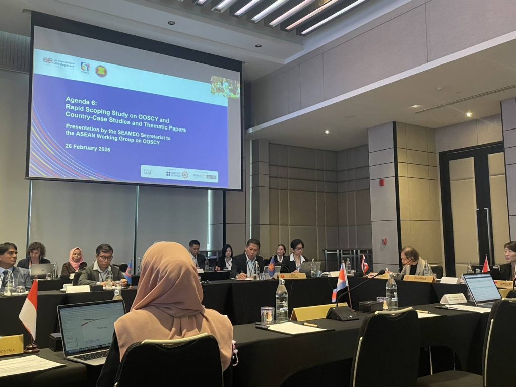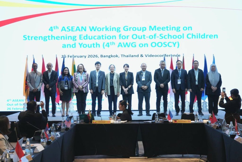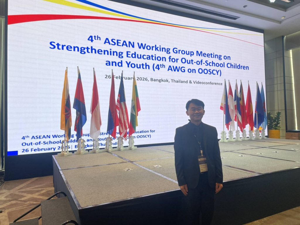 วันที่ 26 กุมภาพันธ์ 2569 กรมส่งเสริมการเรียนรู้ (สกร.) โดยมอบหมายให้ นายโยฑิน สมโนนนท์ รองอธิบดีกรมส่งเสริมการเรียนรู้ เข้าร่วมการประชุมคณะทำงานเพื่อเสริมสร้างความเข้มแข็งด้านการศึกษาให้แก่เด็กและเยาวชนที่ตกหล่น ครั้งที่ 4 (4th Meeting of the ASEAN Working Group on Strengthening Education for Out-of-School Children and Youth: OOSCY) ณ Skyview Hotel Bangkok กรุงเทพมหานคร