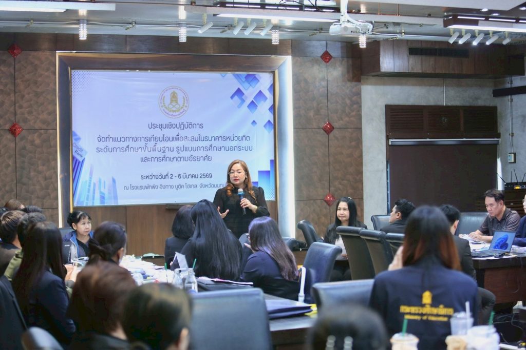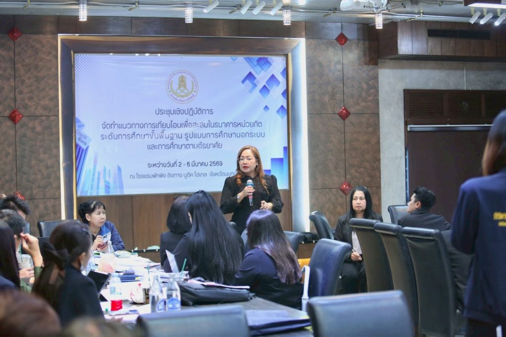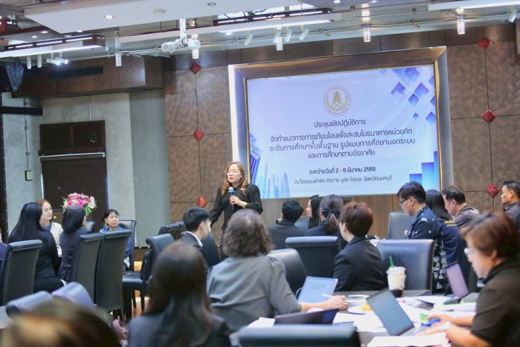ดร.เกศทิพย์ ศุภวานิช อธิบดีกรมส่งเสริมการเรียนรู้ ลงพื้นที่เยี่ยมให้กำลังใจคณะผู้บริหาร ผู้เชี่ยวชาญ และบุคลากรที่เข้าร่วม การประชุมเชิงปฏิบัติการจัดทำแนวทางการเทียบโอนผลการเรียนรู้เพื่อสะสมในธนาคารหน่วยกิต ระดับการศึกษาขั้นพื้นฐาน รูปแบบการศึกษานอกระบบและการศึกษาตามอัธยาศัย ซึ่งจัดโดย กองมาตรฐานและส่งเสริมการเรียนรู้เพื่อคุณวุฒิ ในระหว่างวันที่ 2 – 6 มีนาคม 2569 ณ โรงแรมพักพิง อิงทาง บูติค โฮเทล จังหวัดนนทบุรี โดยมีผู้เข้าร่วมประชุมจากส่วนกลาง ผู้บริหารสถานศึกษา ศึกษานิเทศก์ ครูผู้รับผิดชอบงานเทียบโอน และเจ้าหน้าที่ที่เกี่ยวข้อง เข้าร่วมแลกเปลี่ยนความคิดเห็นและร่วมกันกำหนดแนวทางการดำเนินงานให้เป็นมาตรฐานเดียวกัน