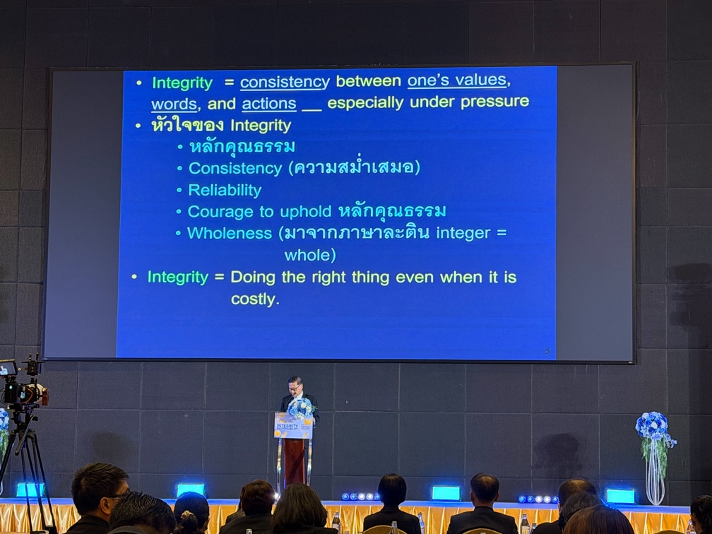 ภายในงานมีการปาฐกถาพิเศษในหัวข้อ “Integrity Capital : ทุนทางจริยธรรม รากฐานสำคัญในการขับเคลื่อนเศรษฐกิจไทยสู่ความยั่งยืน” โดยสะท้อนให้เห็นว่า ทุนทางจริยธรรม คือพลังของความซื่อสัตย์สุจริต ความโปร่งใส ความรับผิดชอบ และการยึดมั่นในหลักคุณธรรมของบุคคลและองค์กร ซึ่งเป็นพื้นฐานสำคัญในการสร้างความเชื่อมั่น ความไว้วางใจ และความร่วมมือในสังคม อันจะนำไปสู่การพัฒนาเศรษฐกิจและสังคมของประเทศอย่างมั่นคงและยั่งยืน