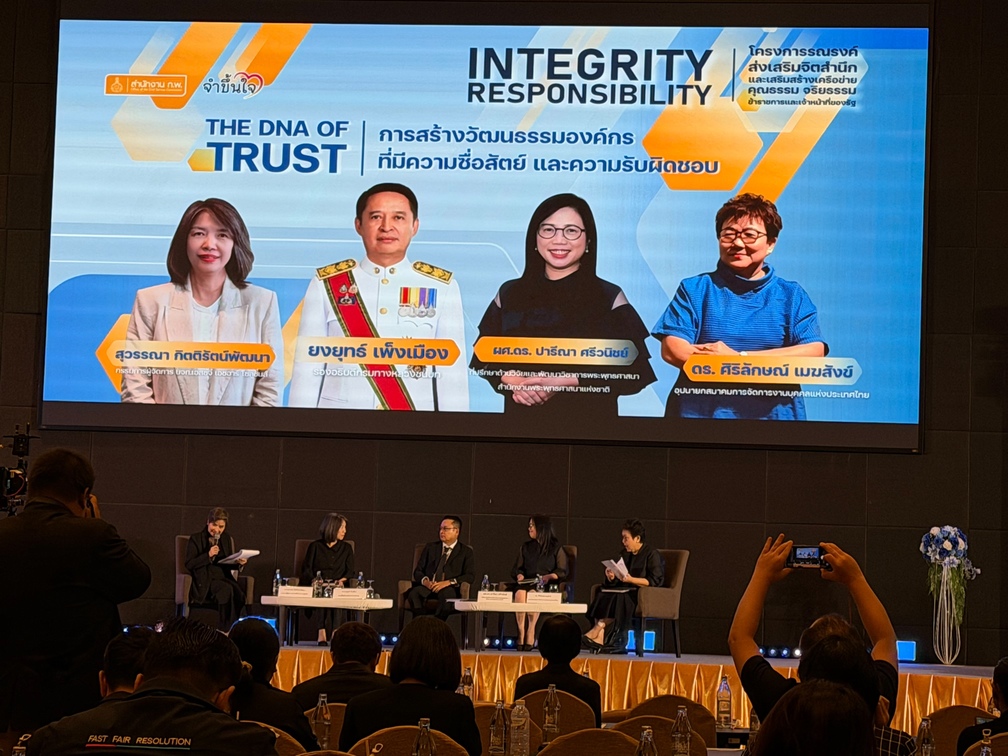 นอกจากนี้ ยังมีการเสวนาในหัวข้อ “The DNA of Trust : การสร้างวัฒนธรรมองค์กรที่มีความซื่อสัตย์และความรับผิดชอบ” ซึ่งเน้นย้ำว่าหัวใจของการสร้างวัฒนธรรมแห่งความไว้วางใจในองค์กร คือการยึดถือหลัก Integrity และ Accountability หรือความซื่อสัตย์สุจริตและความรับผิดชอบร่วมกันของบุคลากรในองค์กร ซึ่งจะช่วยสร้างบรรยากาศการทำงานที่โปร่งใส เปิดกว้าง และส่งเสริมประสิทธิภาพในการทำงานอย่างยั่งยืน