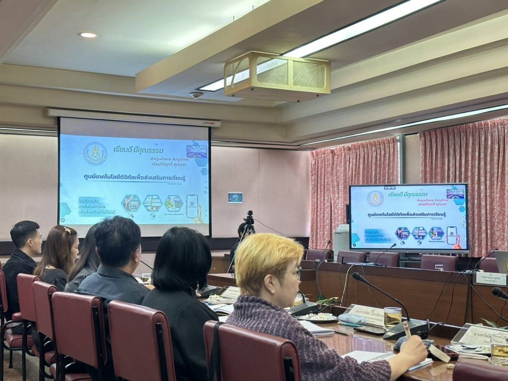 ดร.เกศทิพย์ ศุภวานิช อธิบดีกรมส่งเสริมการเรียนรู้ มอบหมายให้ ดร.วัชรีวรรณ กันเดช รองอธิบดีกรมส่งเสริมการเรียนรู้ เป็นประธานการหารือแนวทางการขับเคลื่อนการดำเนินงานศูนย์เทคโนโลยีดิจิทัลเพื่อส่งเสริมการเรียนรู้ โดยมี นางสาวมณฑา แข็งเขตการณ์ ผู้อำนวยการศูนย์เทคโนโลยีดิจิทัลเพื่อส่งเสริมการเรียนรู้ พร้อมด้วยหัวหน้ากลุ่มและบุคลากร เข้าร่วมการประชุม เมื่อวันที่ 19 มีนาคม 2569 เวลา 09.00 – 12.00 น. ณ ศูนย์เทคโนโลยีดิจิทัลเพื่อส่งเสริมการเรียนรู้