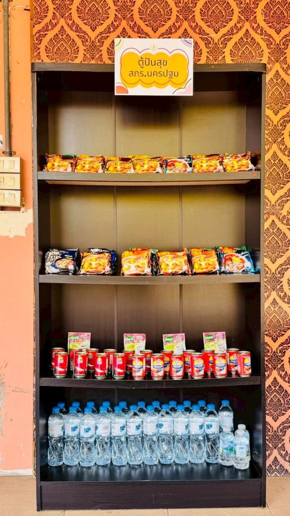 ในการนี้ หน่วยงานในสังกัดกรมส่งเสริมการเรียนรู้ (สกร.) ได้ร่วมเป็นส่วนหนึ่งในการบรรเทาความเดือดร้อน โดยทยอยจัดตั้ง “ตู้ปันสุข” ในพื้นที่ต่าง ๆ อาทิ จังหวัดพระนครศรีอยุธยา จังหวัดนครปฐม จังหวัดหนองคาย และอีกหลายจังหวัดทั่วประเทศ เพื่อเปิดพื้นที่แห่งการแบ่งปัน สร้างโอกาสให้ผู้ให้ได้ส่งต่อ และผู้รับได้เข้าถึงความช่วยเหลืออย่างทั่วถึง